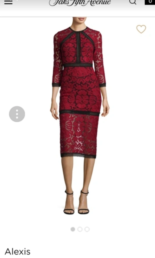 29Alexis Randie Lace Fitted Dress Red lace dress with 3/4 sleeves. Fitted silhouette. Black trim. Worn only two times. Excellent condition.