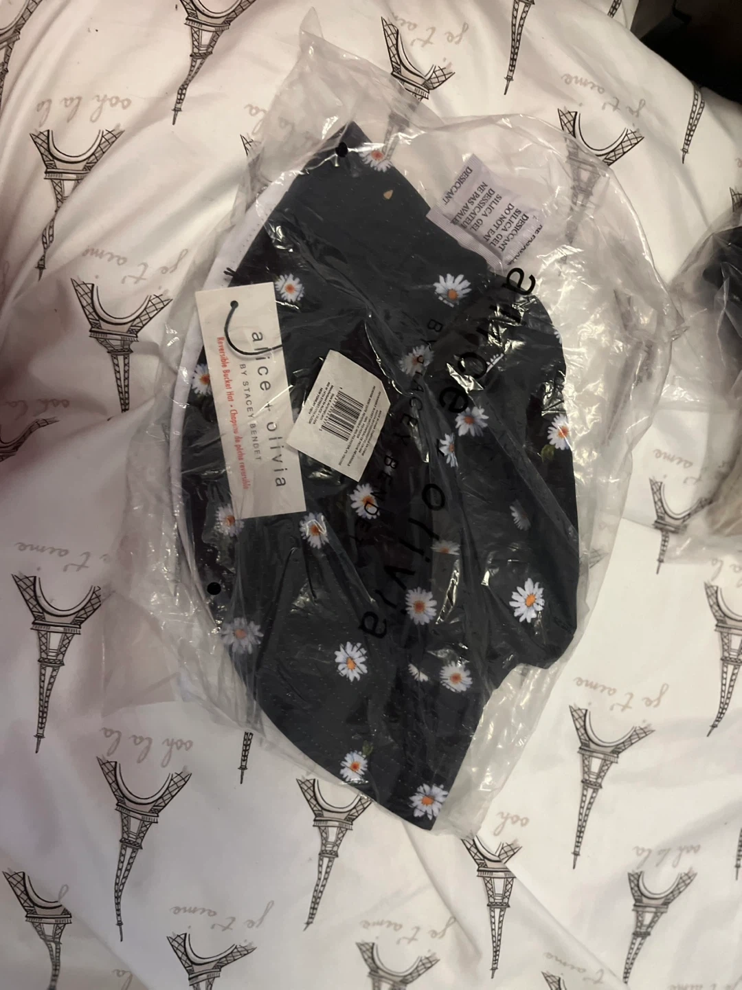 Selling a brand new Alice + Olivia reversible bucket hat! It's still in the original packaging. This stylish hat features a cute daisy print on one side and a solid colour on the other, making it super versatile. Perfect for adding a touch of fun to any outfit!