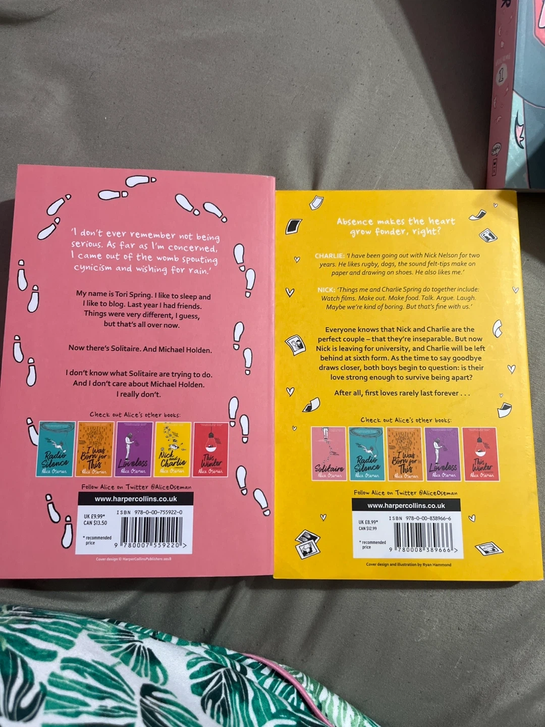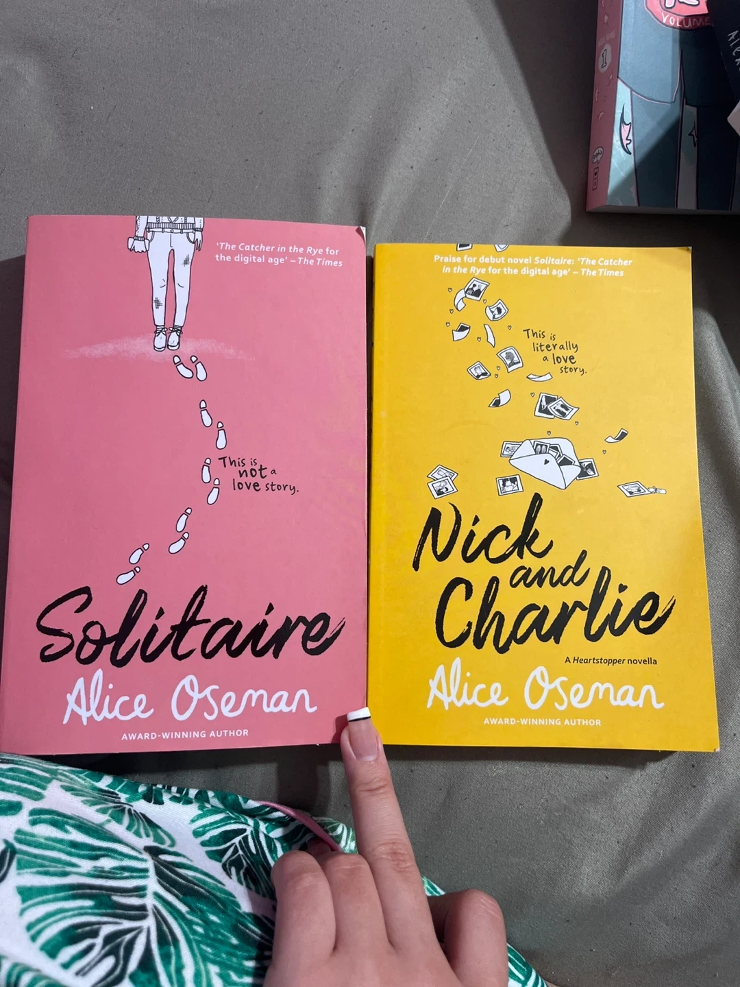 Selling two books by Alice Oseman: Solitaire and Nick and Charlie! Both are in great condition and ready for a new home. Perfect for fans of the Heartstopper series or anyone looking for a heartwarming read