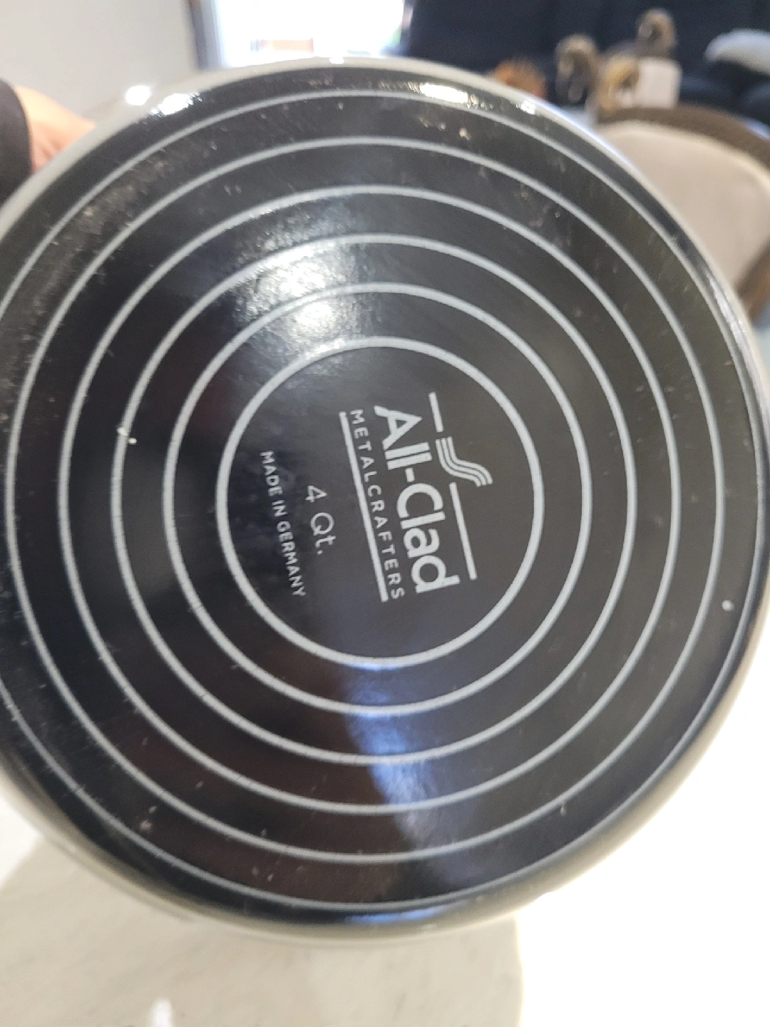 Used only a couple of times. unfortunately its a bit too small for my needs. All-Clad Metalcrafters stock pot. It's a 4 quart pot and comes with a lid. Made in Germany.