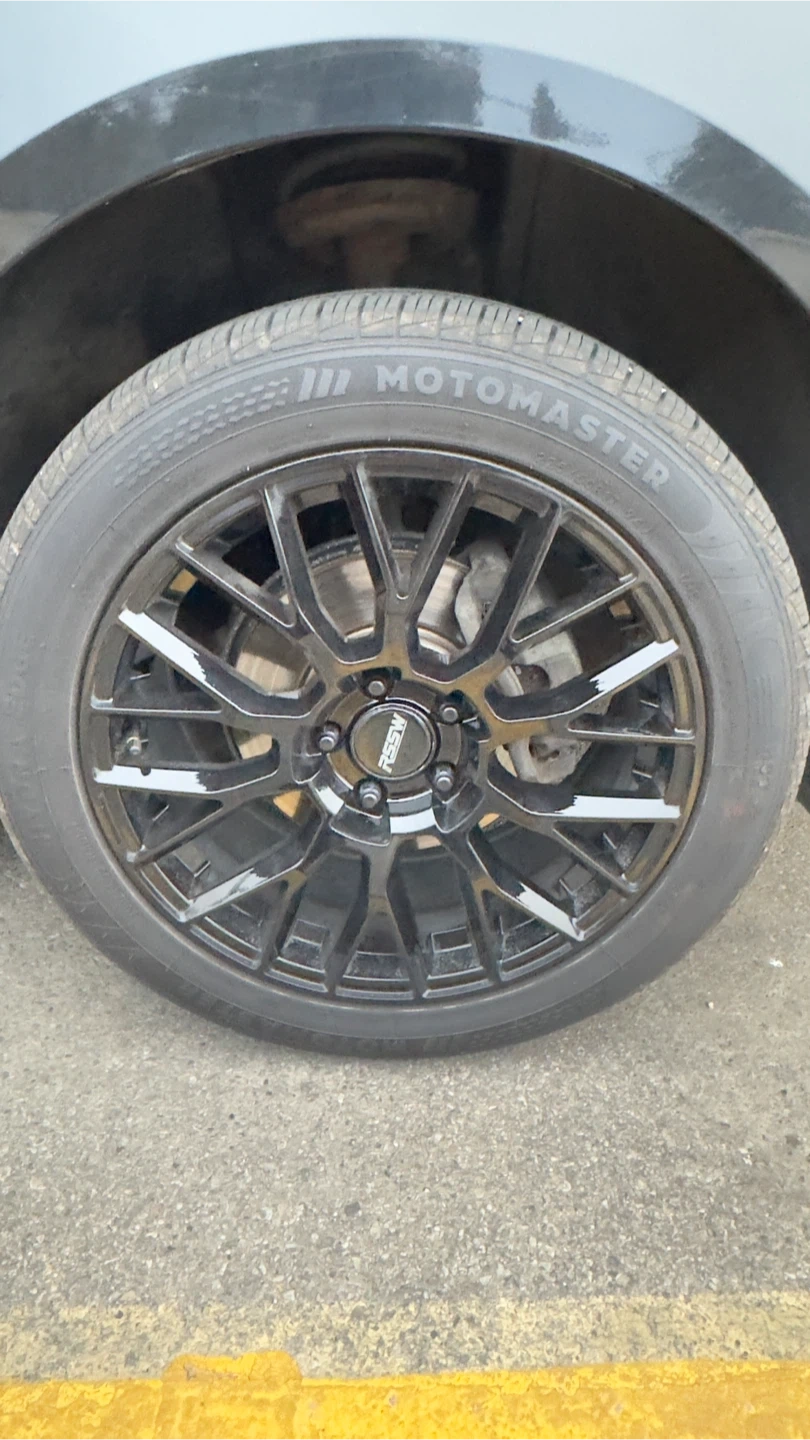 17Black Alloy (multi-spoke design, gloss finish) • Size: 17-inch (Standard Rim 7J) • Bolt Pattern: 5-lug universal fit (fits many Honda, Toyota, Chevy, and Mazda models) • Condition: Very good; minimal cosmetic wear only • Tires: Motomaster All-Season M+S • Tire Size: 225/50R17 94V • Tread Life: Still plenty of tread left – balanced and ready to mount Selling a clean set of black RSSW alloy rims wrapped in Motomaster 225/50R17 all-season tires. These look great on sedans and compact SUVs — sporty and stylish. Includes: • 4x rims • 4x tires mounted and balanced
