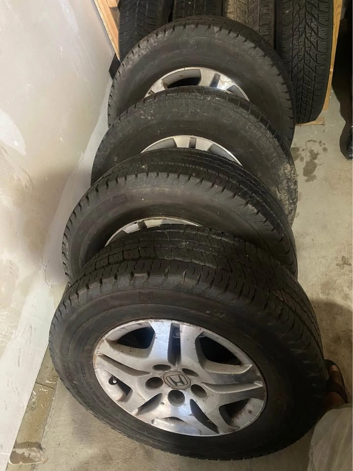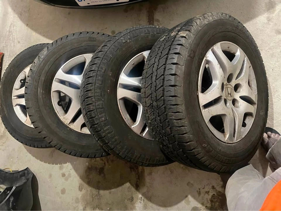 Selling a clean set of all-season tires with rims, used very lightly. ✅ Deep tread – lots of life left ✅ Rims in excellent condition – no rust or bends ✅ Bolt pattern: 5x120 Smooth, quiet ride and great traction in all weather. Save hundreds over new ones — ready to mount and go!