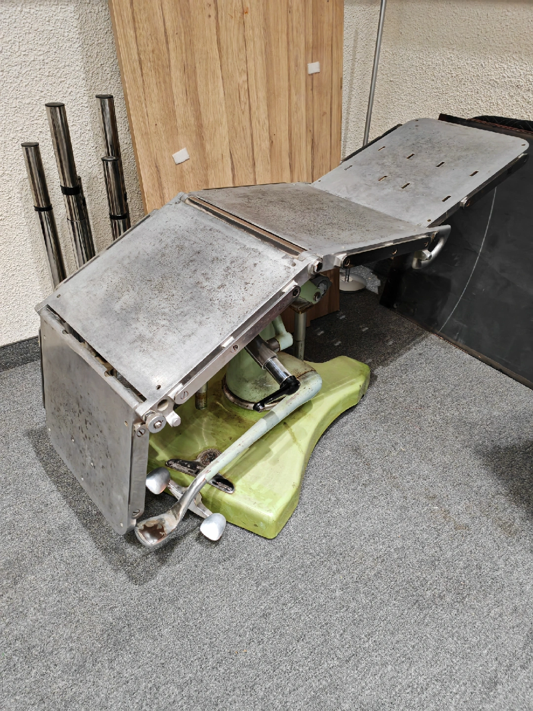Selling an Allen & Hanburys operating table. It shows signs of wear and use, but is still functional. Perfect for a medical professional or collector!
