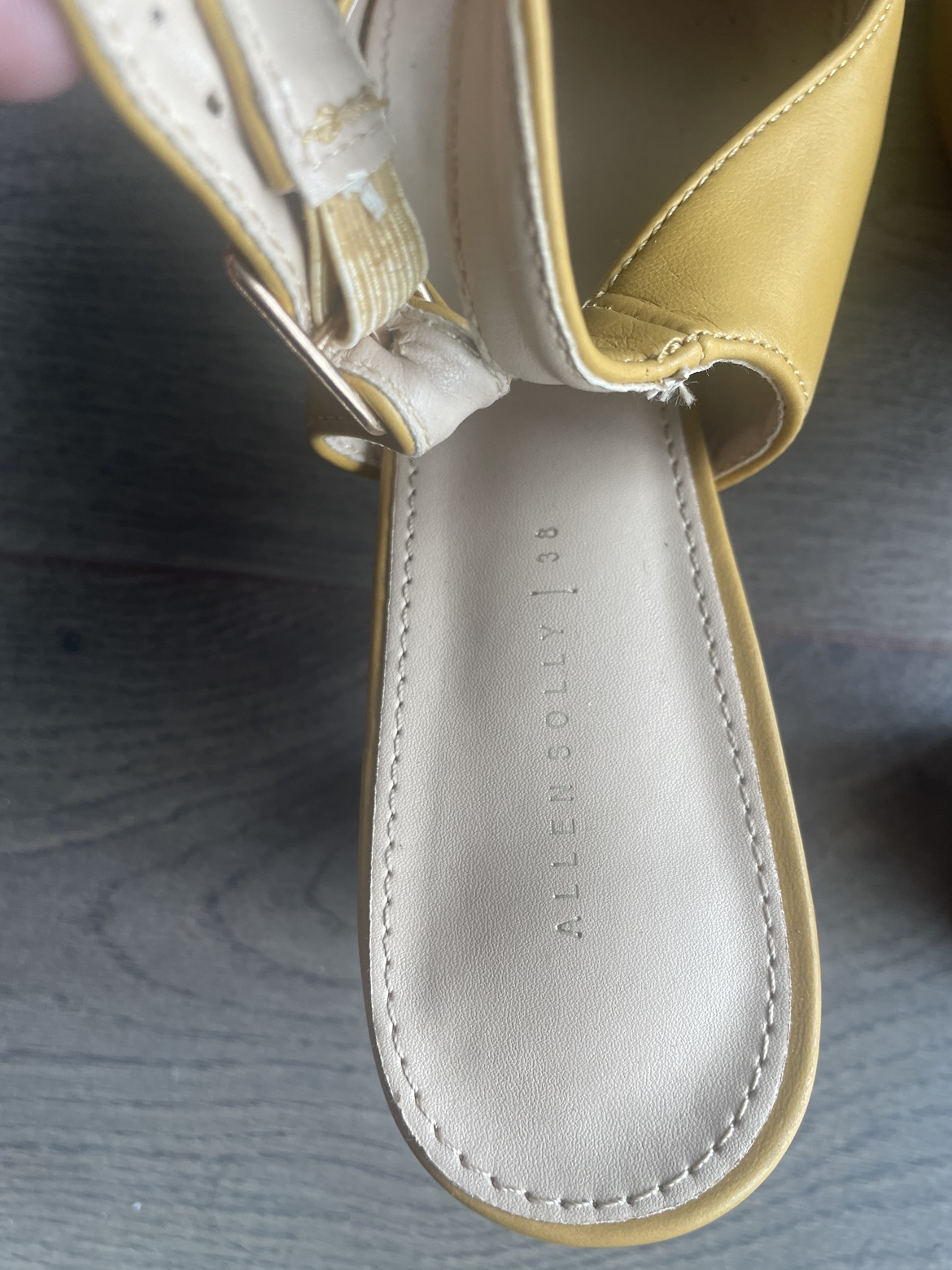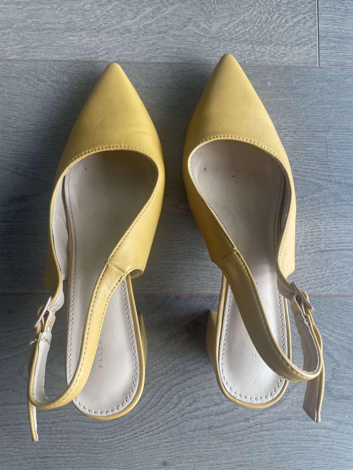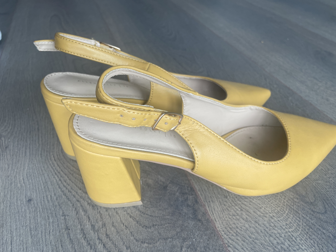 72Almost new Allen Solly yellow heeled sandals. Worn 2-3 times. Super comfortable. Giving away as I got a heel injury and I’m advised to not wear heels anymore.