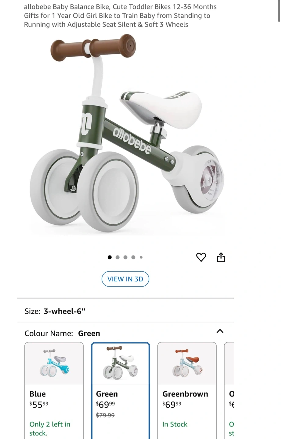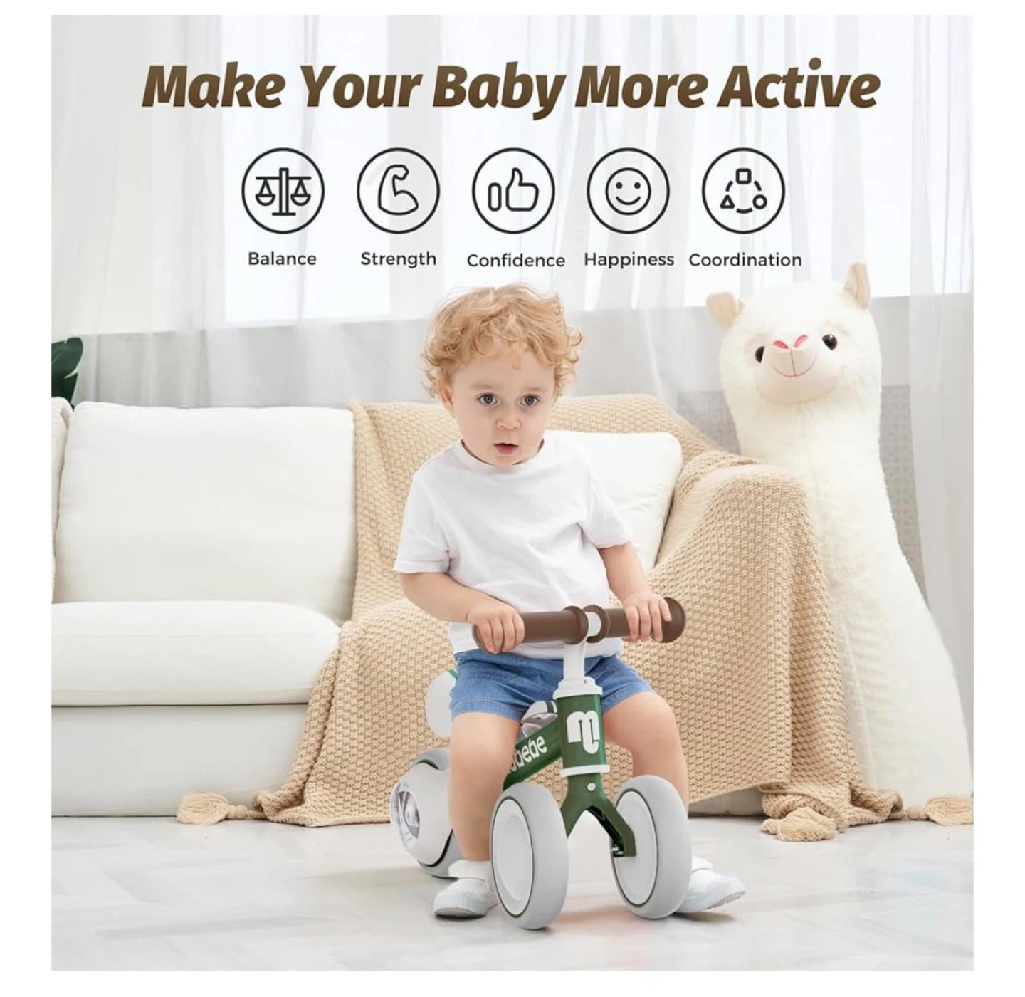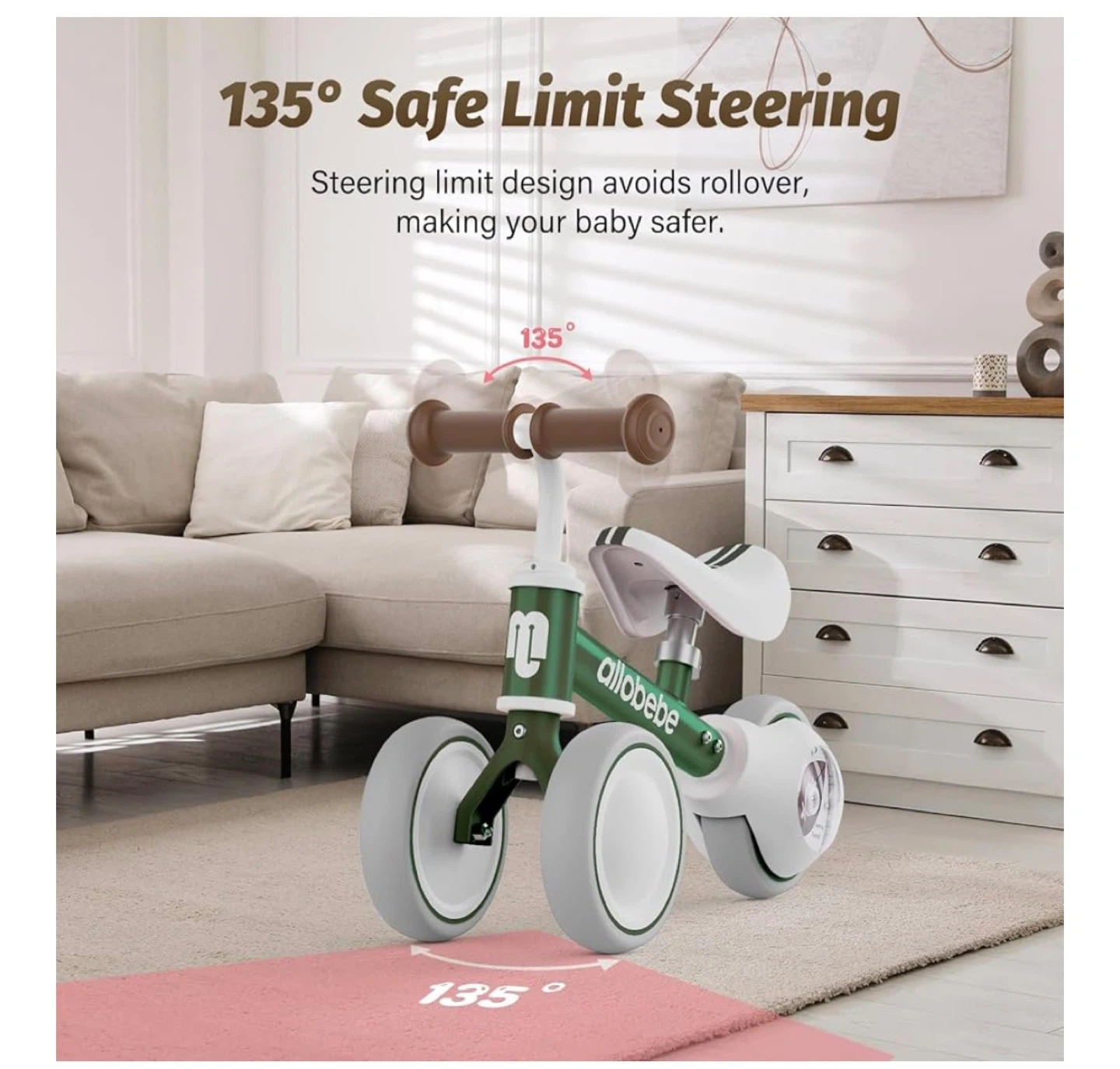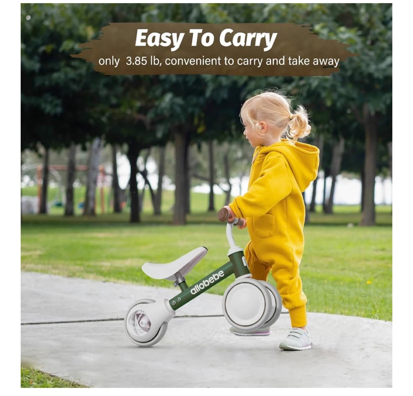 This Allobebe balance bike is perfect for little ones aged 12-36 months! It's a cute toddler bike designed to help your baby learn to balance from standing to running. It has an adjustable seat, silent wheels, and soft 3 wheels. The steering limit design avoids rollover, making your baby safer. It originally sells for $69.99!