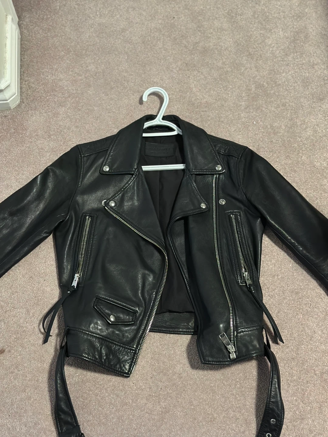 60Selling a gently used AllSaints Balfern leather biker jacket in black. It's in great shape and has lots of life left! The jacket measures approximately 21 inches in length and 17 inches across the back. A stylish addition to any wardrobe!