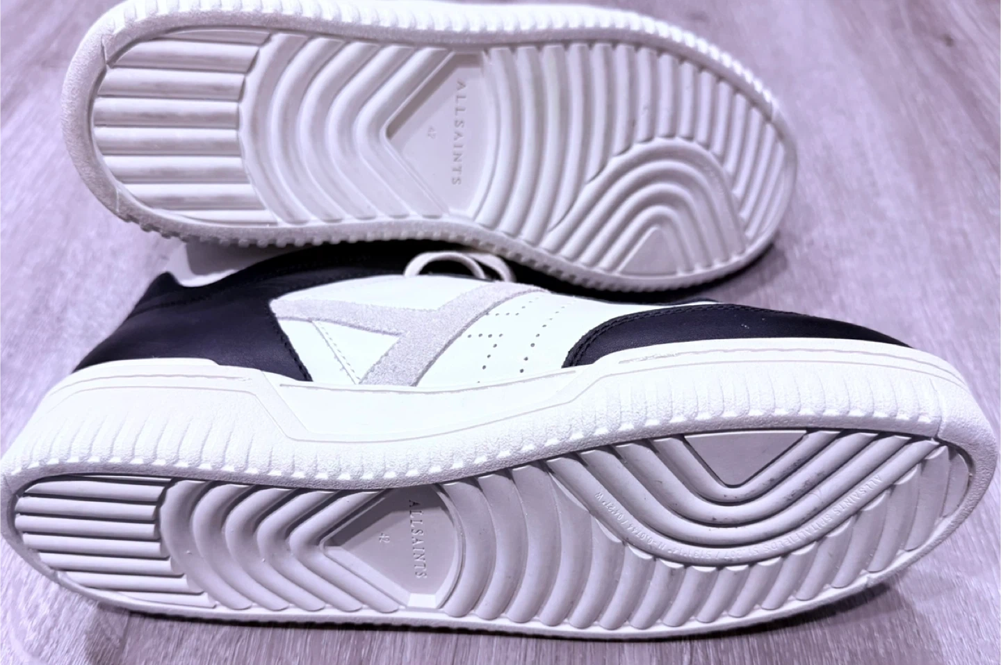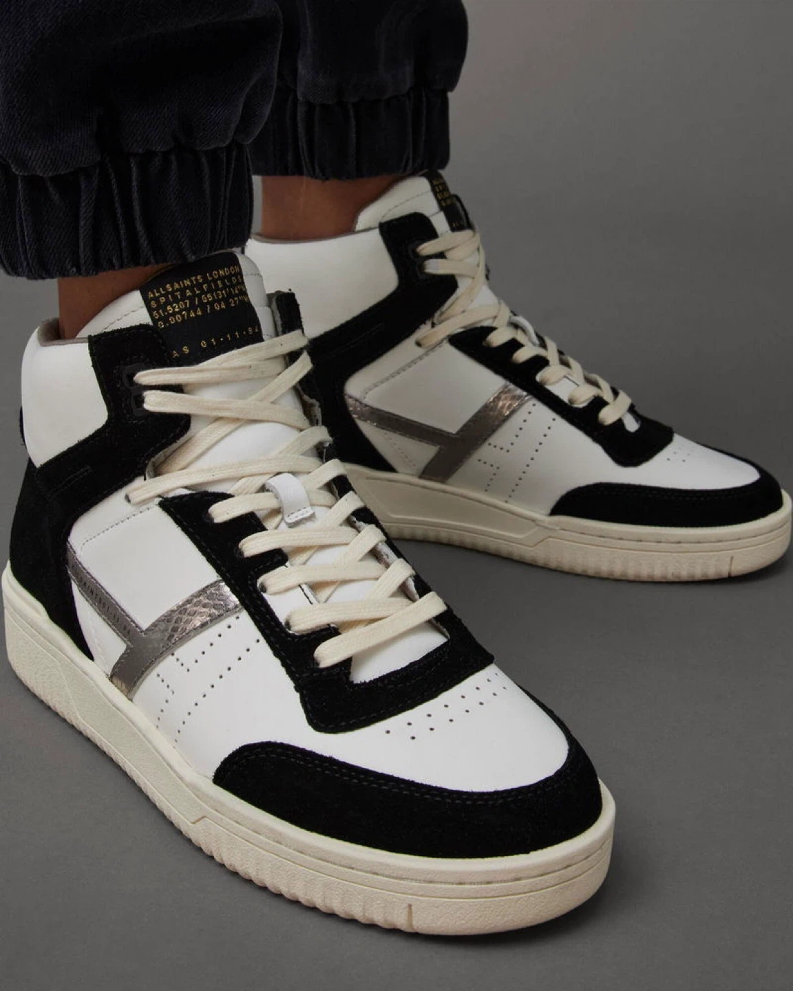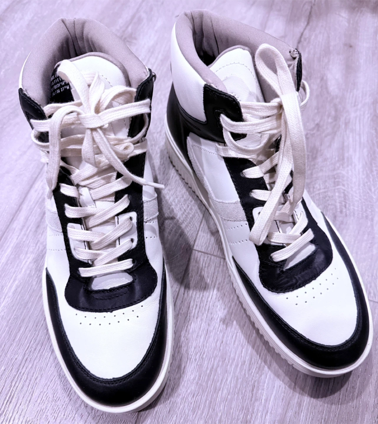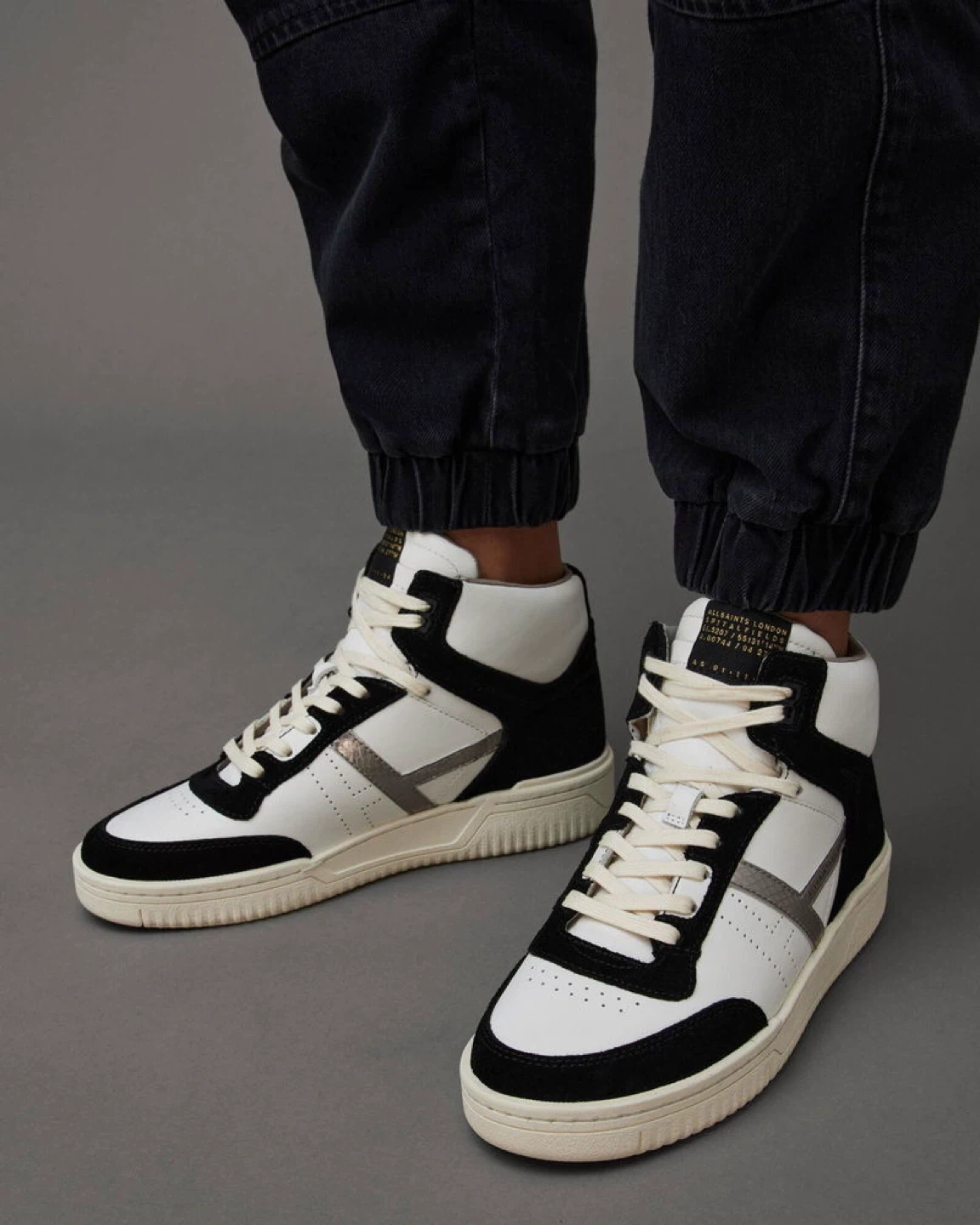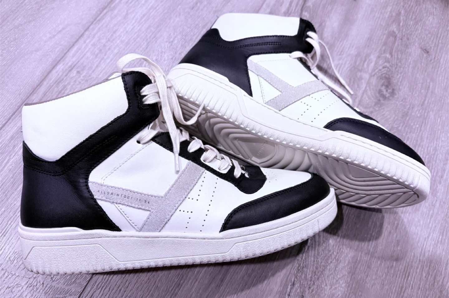 442Selling a pair of AllSaints Camden high-top sneakers in a stylish black and white colourway! These are a US size 9 and feature a cool, modern design. Great for adding a bit of edge to your everyday look!