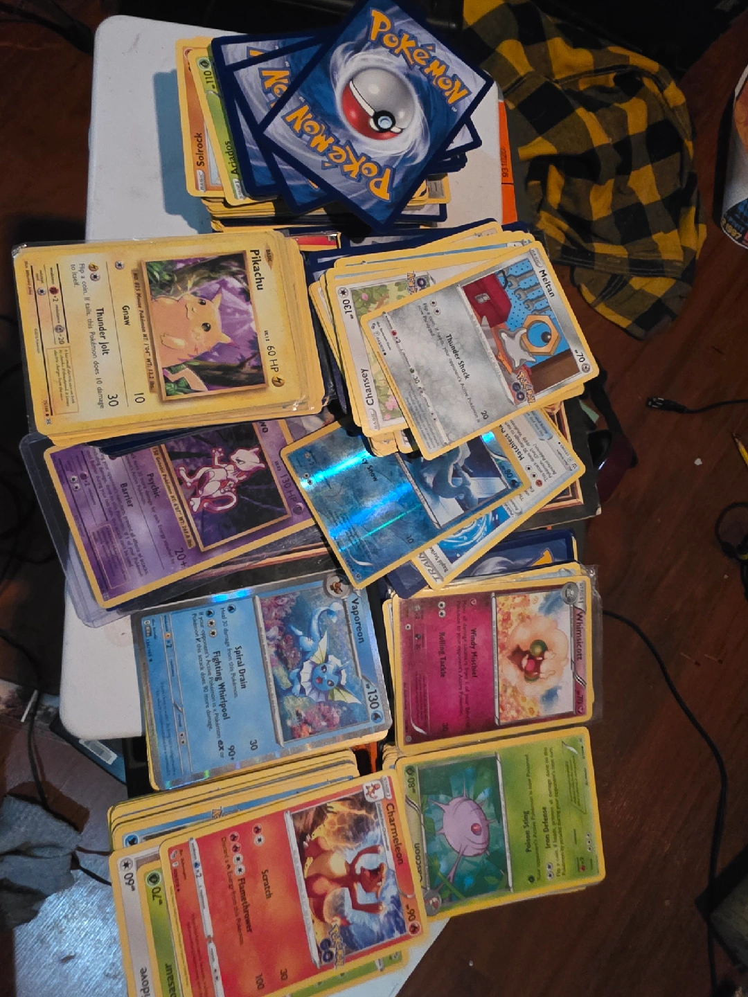 Selling a mixed lot of Pokemon trading cards! There's a variety of different cards, including Pikachu, Charmeleon, Vaporeon and more. Appraised at approx $545.00 value