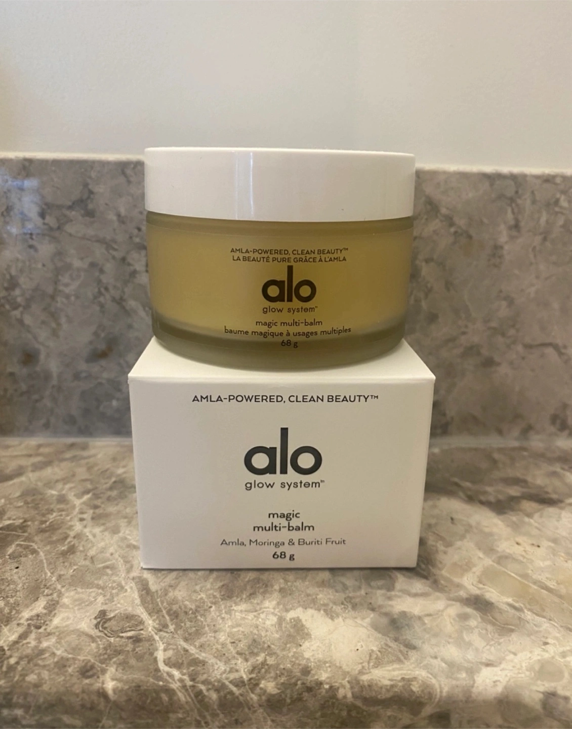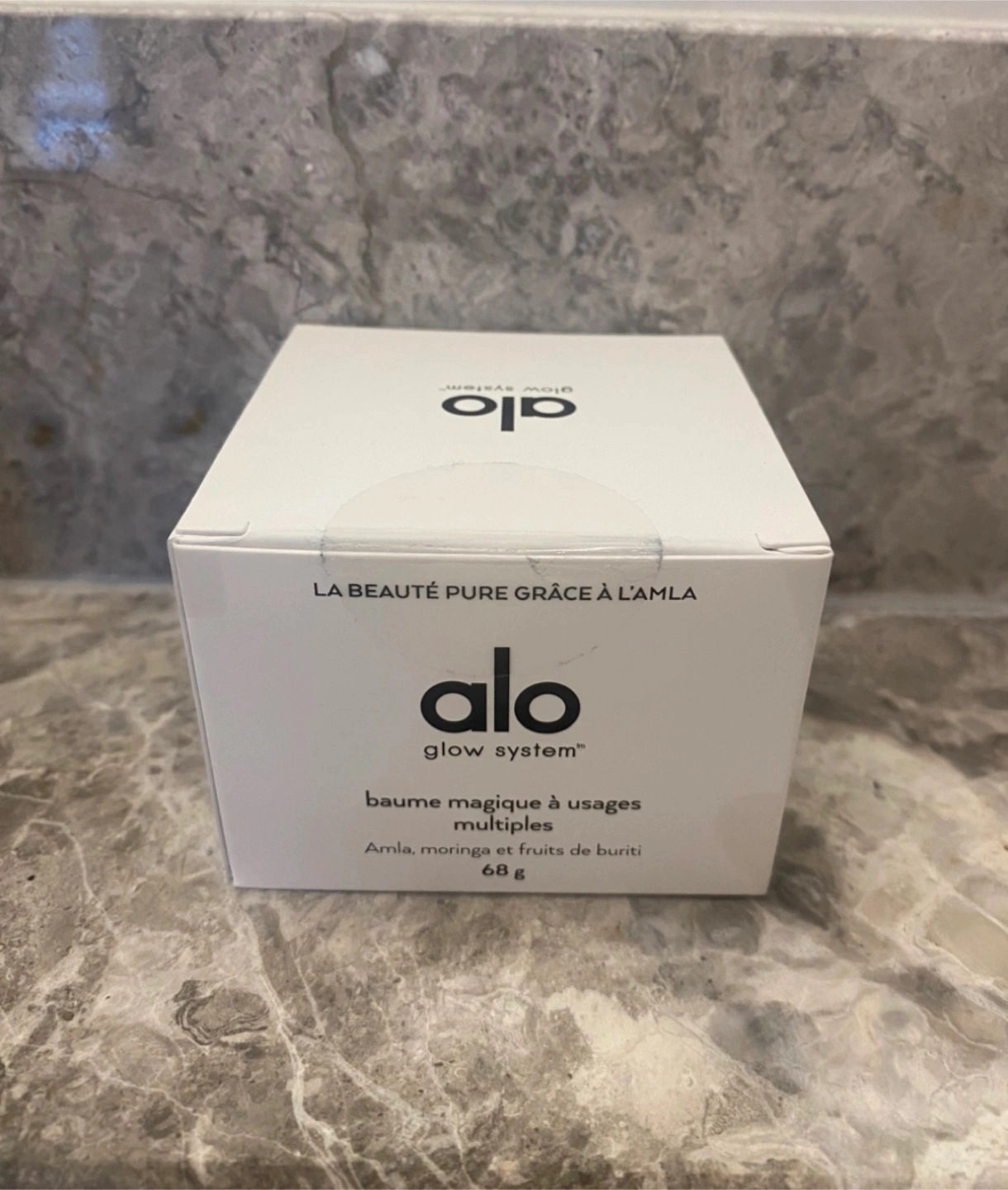 I'm selling a brand new ALO Magic Multi-Balm! This amazing everything balm is an overnight slugging hydrator, glass-skin highlighter, makeup-removing oil cleanser, and dry skin soother all-in-one! The balm is amla-powered and part of the clean beauty glow system. It contains amla, moringa and buriti fruit, and comes in a 68g container. Originally bought for $70