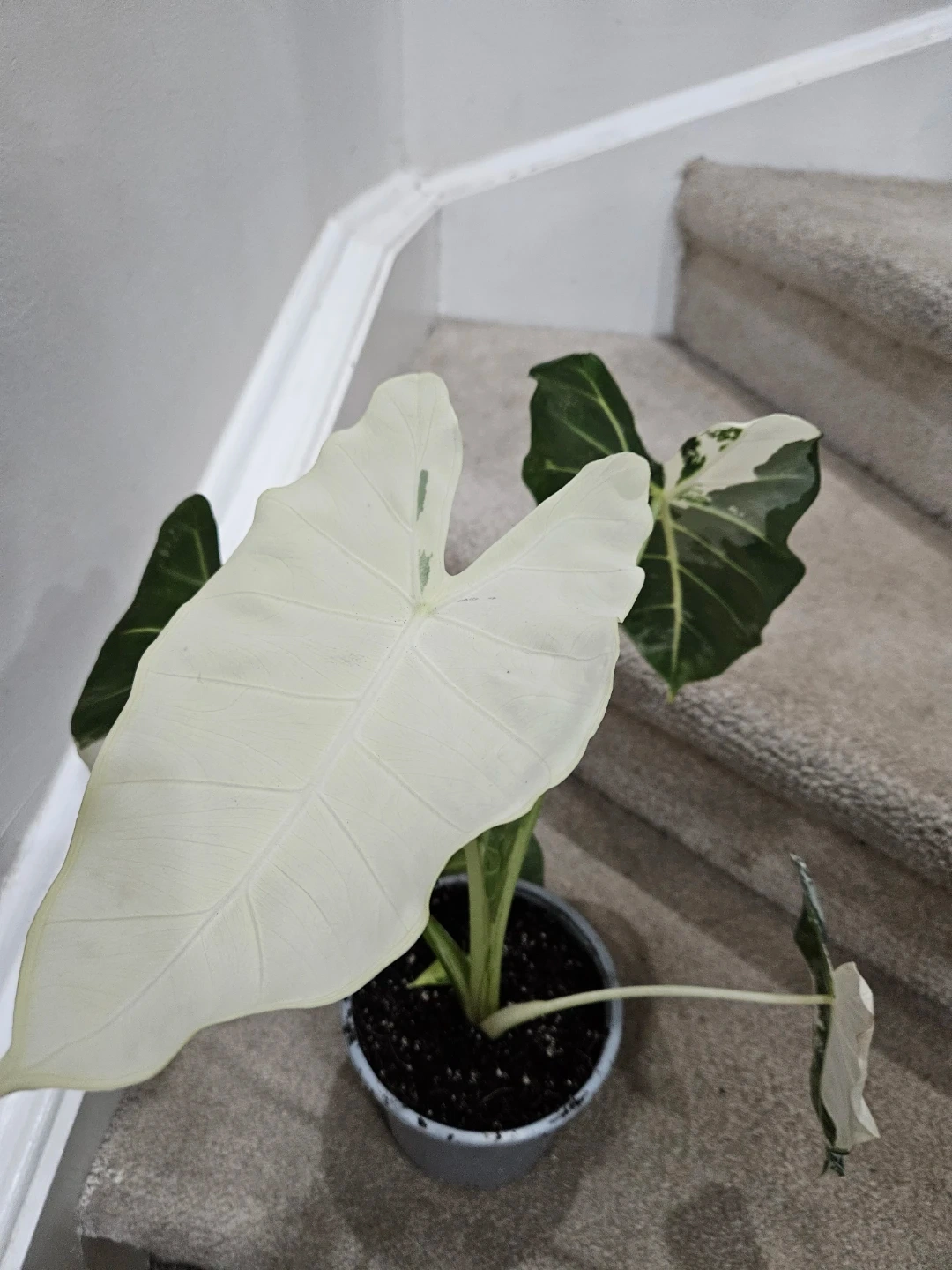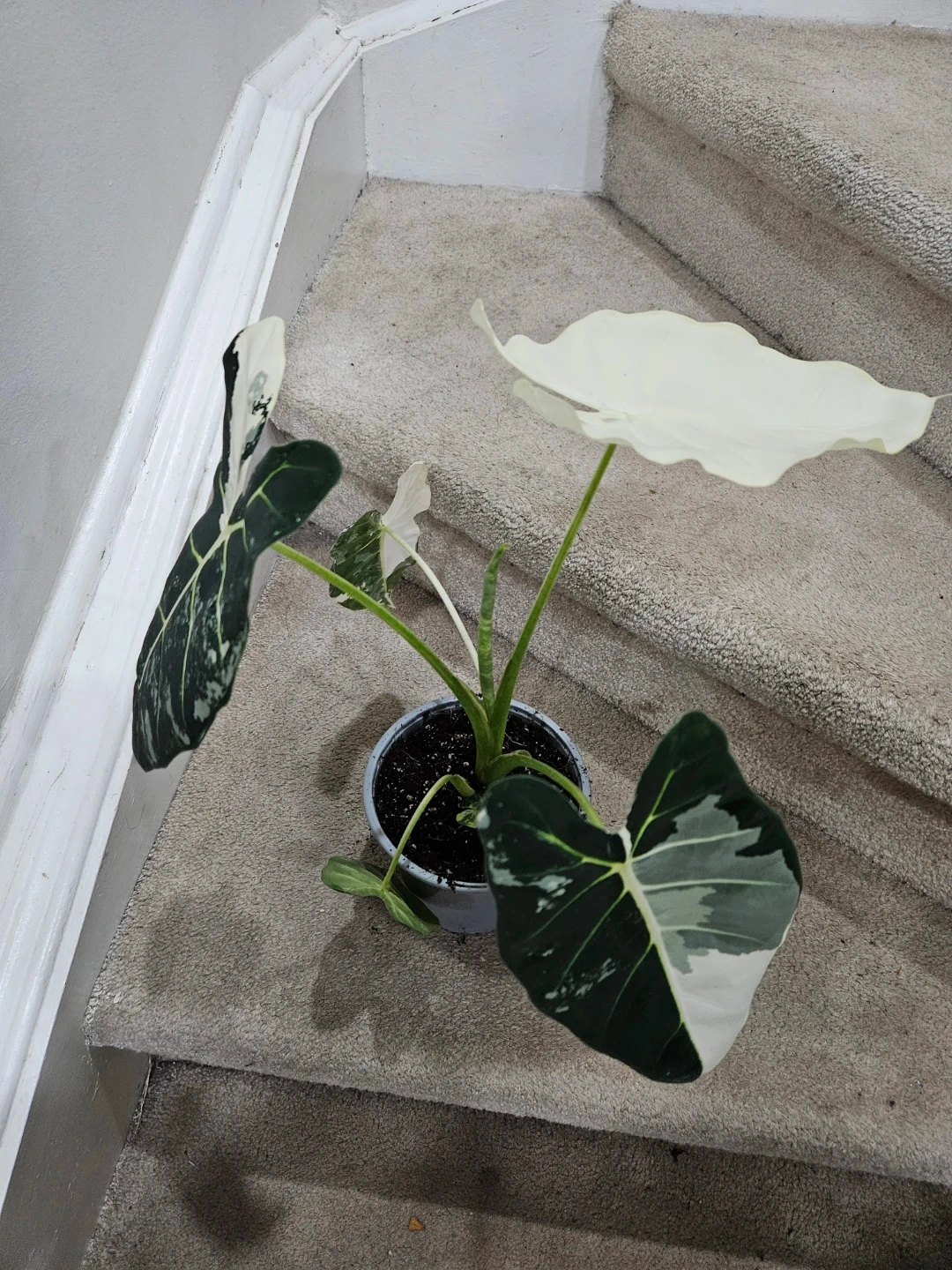 694Selling a beautiful Alocasia Frydek Variegated plant! It has stunning white and green leaves that add a unique touch to any space. This plant is healthy and well-cared for, ready to brighten up your home