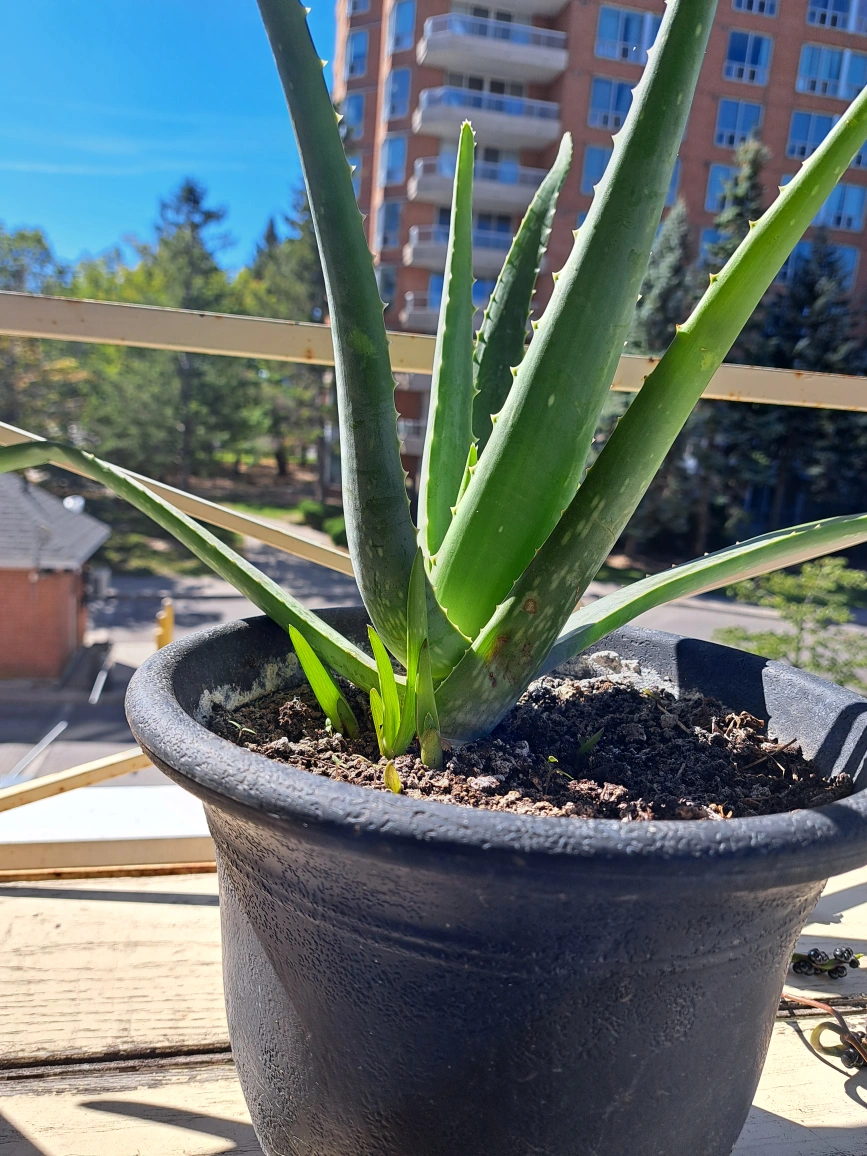 Selling a healthy aloe vera plant in a black pot. It's a great addition to any home and is known for its soothing properties!