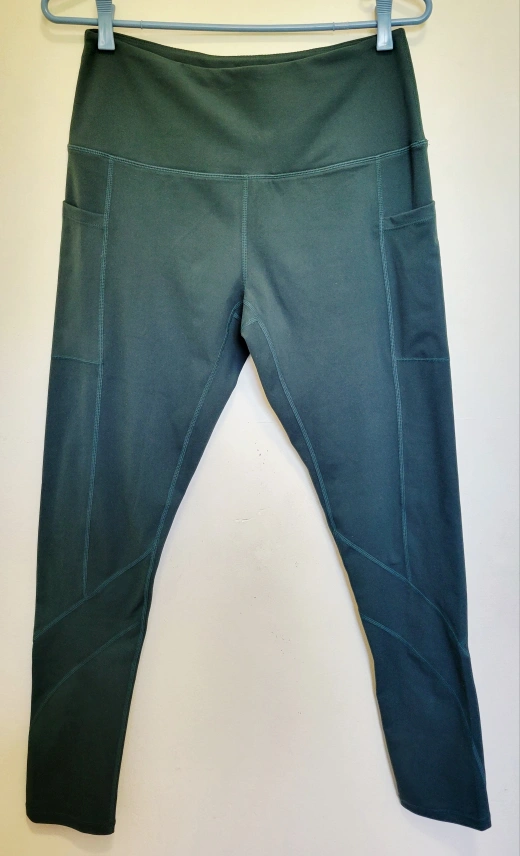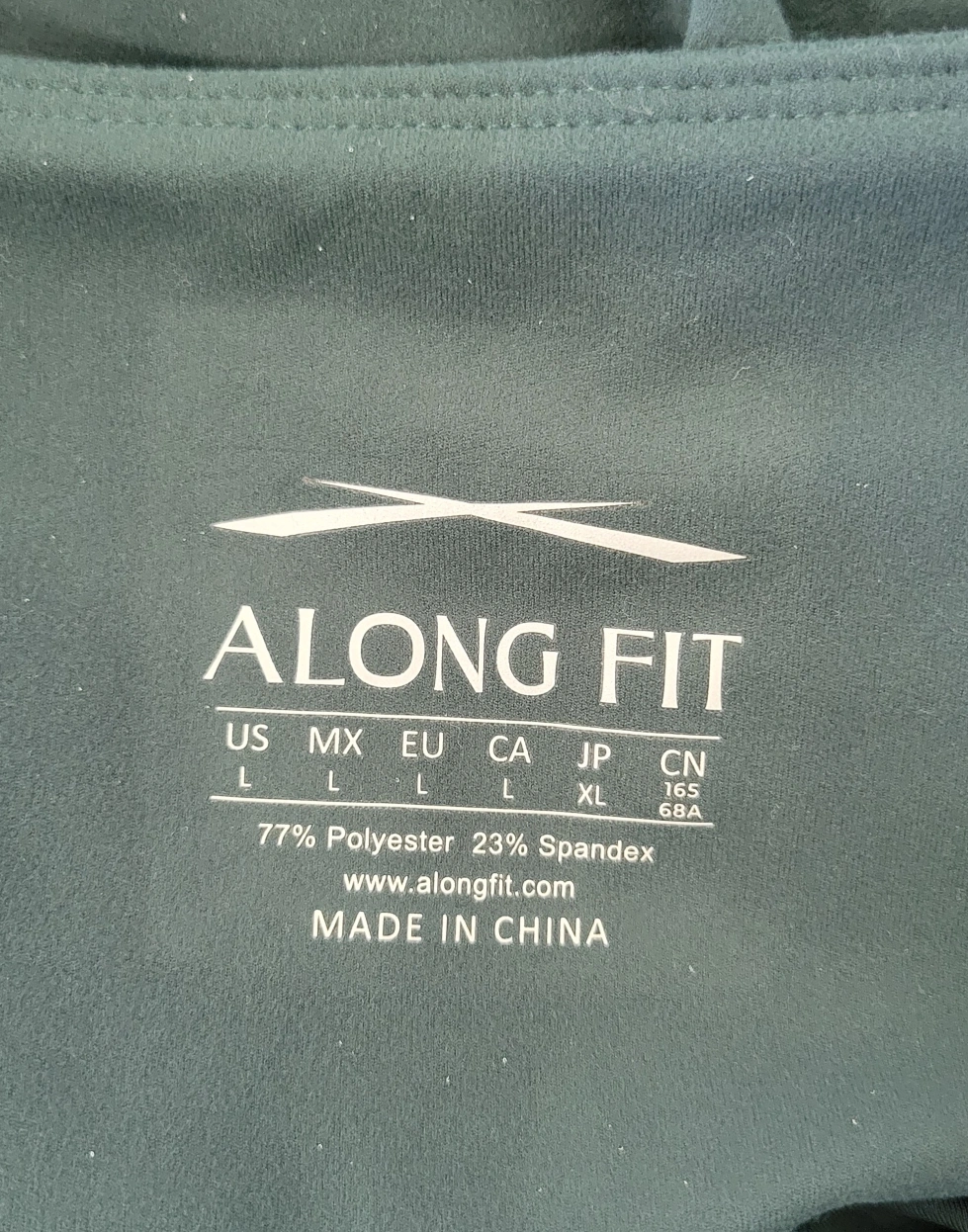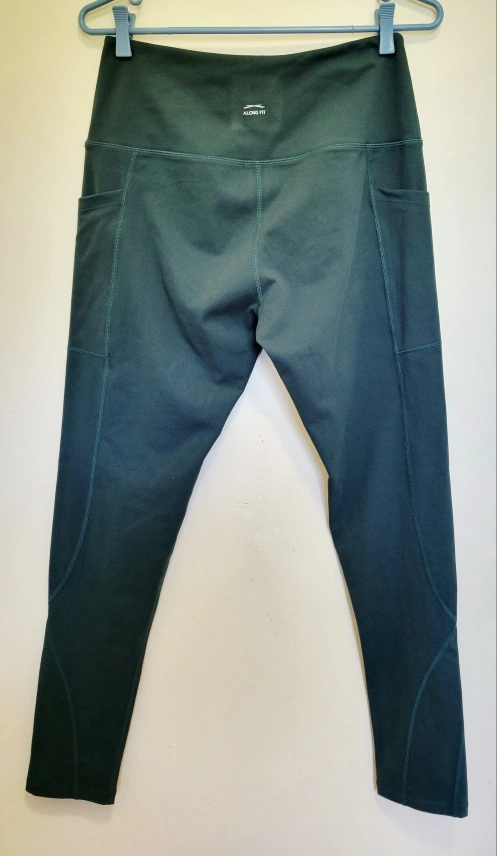 Comfy green leggings from ALONG FIT in size L! Made of 77% polyester and 23% spandex, they're perfect for workouts or just lounging around. They have handy pockets too! ************************************************* **PICK UP ONLY** Cash or etransfer only upon you seeing the product in person first. No money is expected beforehand.