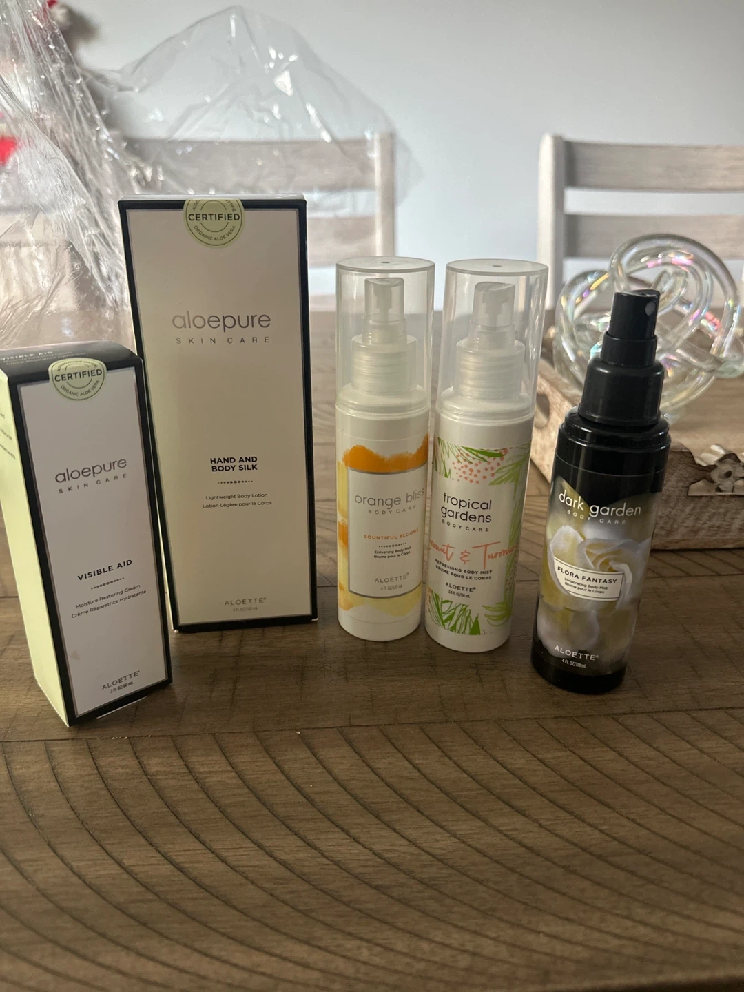 109Selling a collection of Alouette skin care items! Included are Aloepure Visible Aid, Aloepure Hand and Body Silk, Orange Bliss body mist, Tropical Gardens body mist, and Dark Garden body mist. All are in great condition and ready for a new home