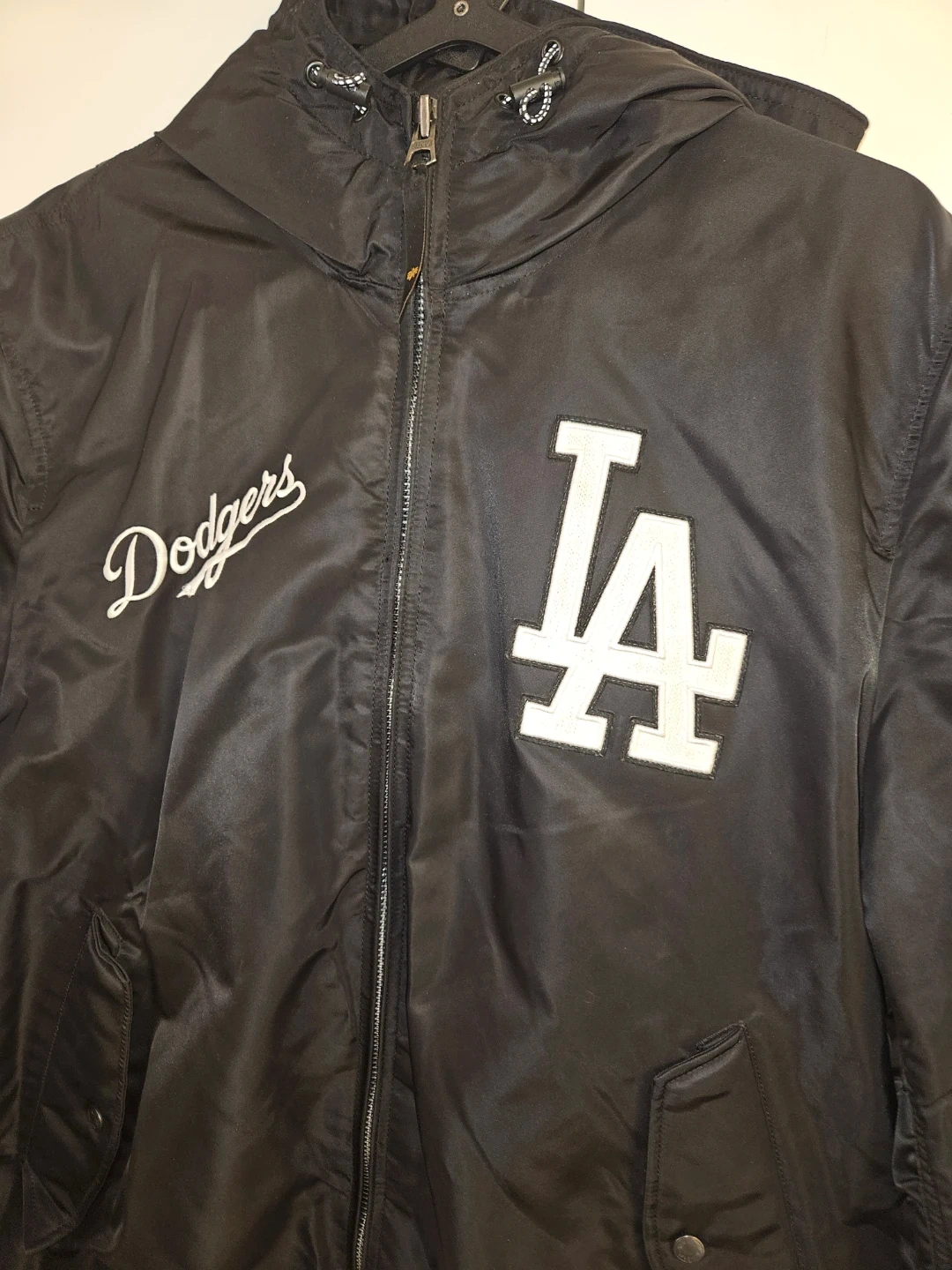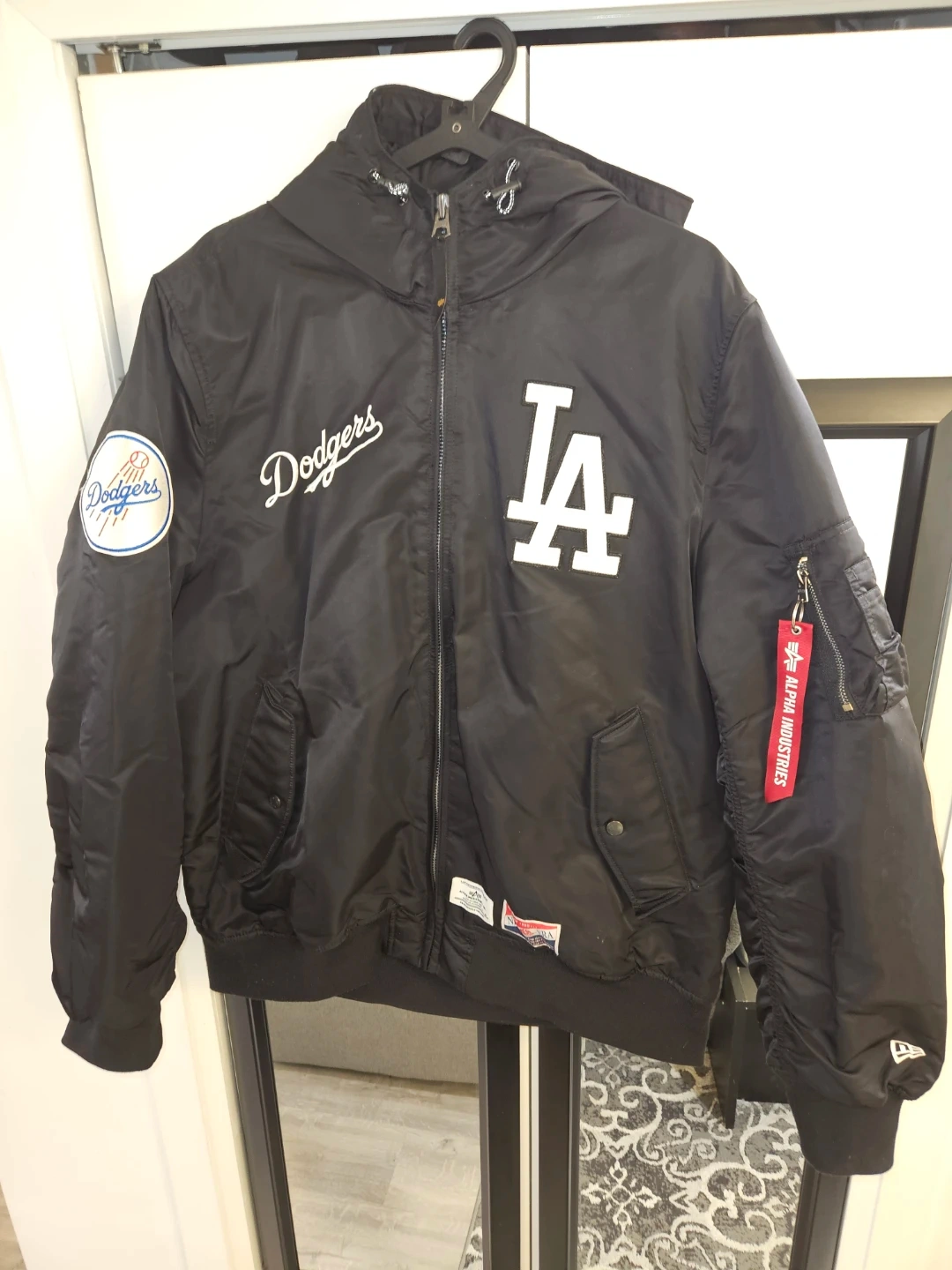 5LA DODGERS ALPHA INDUSTRIES X NEW ERA HOODED BOMBER JACKET XL WORN TWICE. COMES WITH TAGS AND RECEIPT. COMPLETELY SOLD OUT ONLINE! MEN'S XL ASKING $420 OBO!! LOCATED DOWNTOWN TORONTO BY JARVIS AND CARLTON