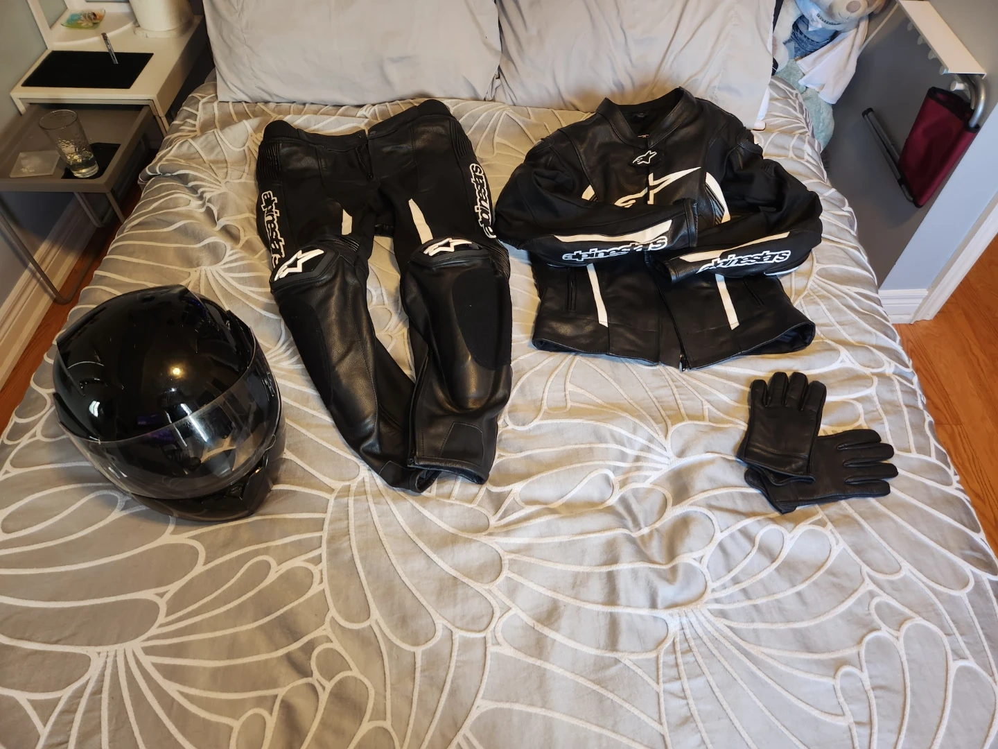 20Selling my Alpinestars GP Plus v2 one-piece leather suit. It’s the Tech-Air compatible model, great for both track and street riders. The suit’s in excellent condition — no crashes, rips, or major wear. Only worn a handful of times. Details: Model: Alpinestars GP Plus v2 (Tech-Air compatible) Size: EU 52 / US 42 CE-rated armor in shoulders, elbows, knees, and back Premium leather with stretch panels for comfort Perforated for ventilation All zippers and seams in perfect shape Price: $800 (open to reasonable offers) Location: Midtown Toronto BONUS: HUGE helmet discount with suit purchase! - Emmo XS DOT Certified Modular Helmet (from photos) available for an additional $20 with purchase of the suit (Helmet currently listed for $50) Well cared for and ready to ride. Great value for a proper race-level suit and DOT Certified helmet. Also open to offers