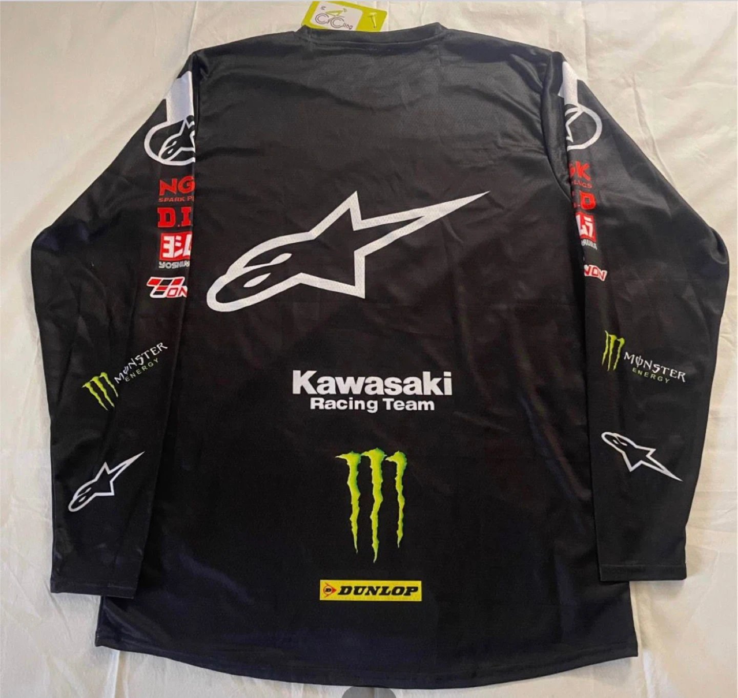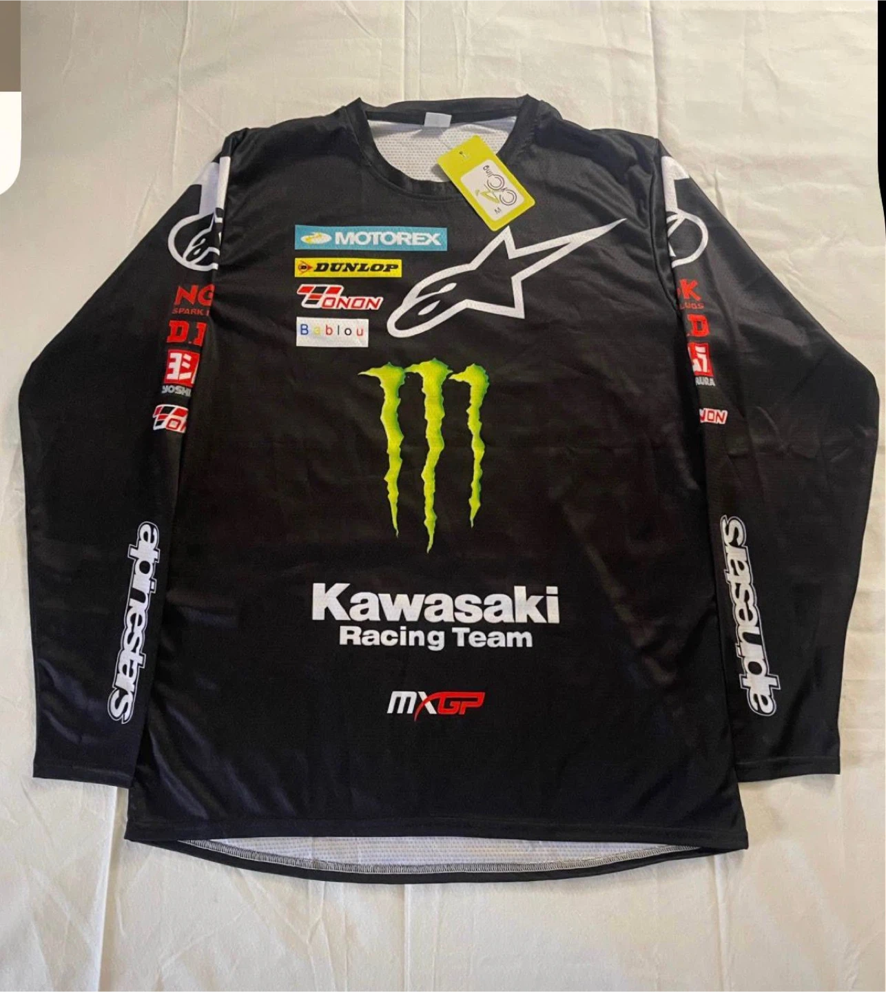 10Selling an Alpinestars long sleeve shirt featuring the Kawasaki Racing Team design. It's black with logos from Motorex, Dunlop, and Monster Energy. Perfect for racing fans!