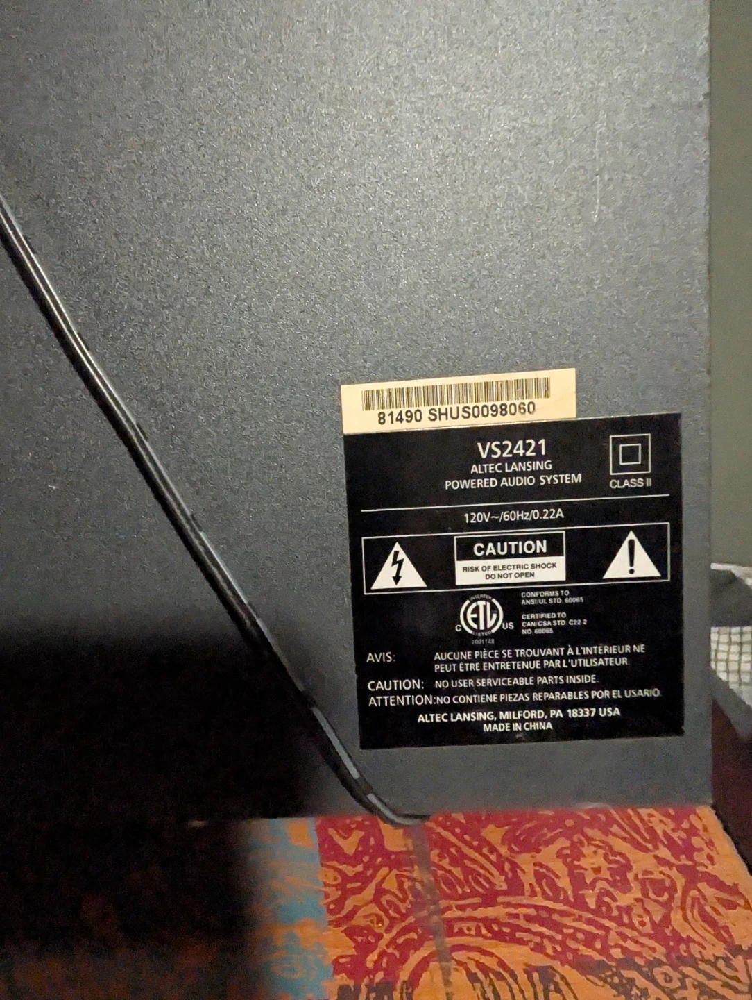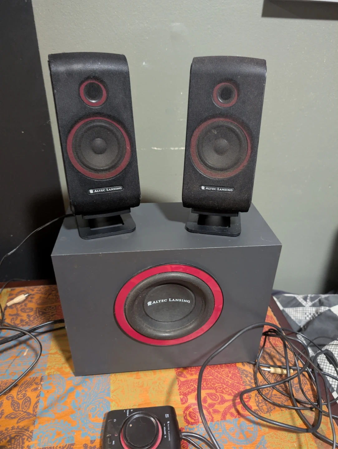 88Altec Lansing VS2421 Computer Speaker System and Subwoofer. Works great, great deep base if you like lots of base.