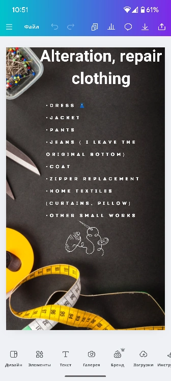 Offering alteration and repair services for your clothing needs! - Dresses - Jackets - Pants - Jeans (original bottom) - Coats - Zipper replacement - Home textiles (curtains, pillows) - Other small works