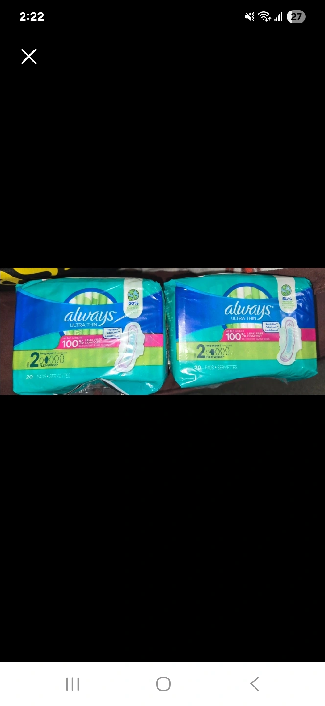 2 packs of Always Ultra Thin size 2 (20 pads in each pack) $3 each or $6 for both.