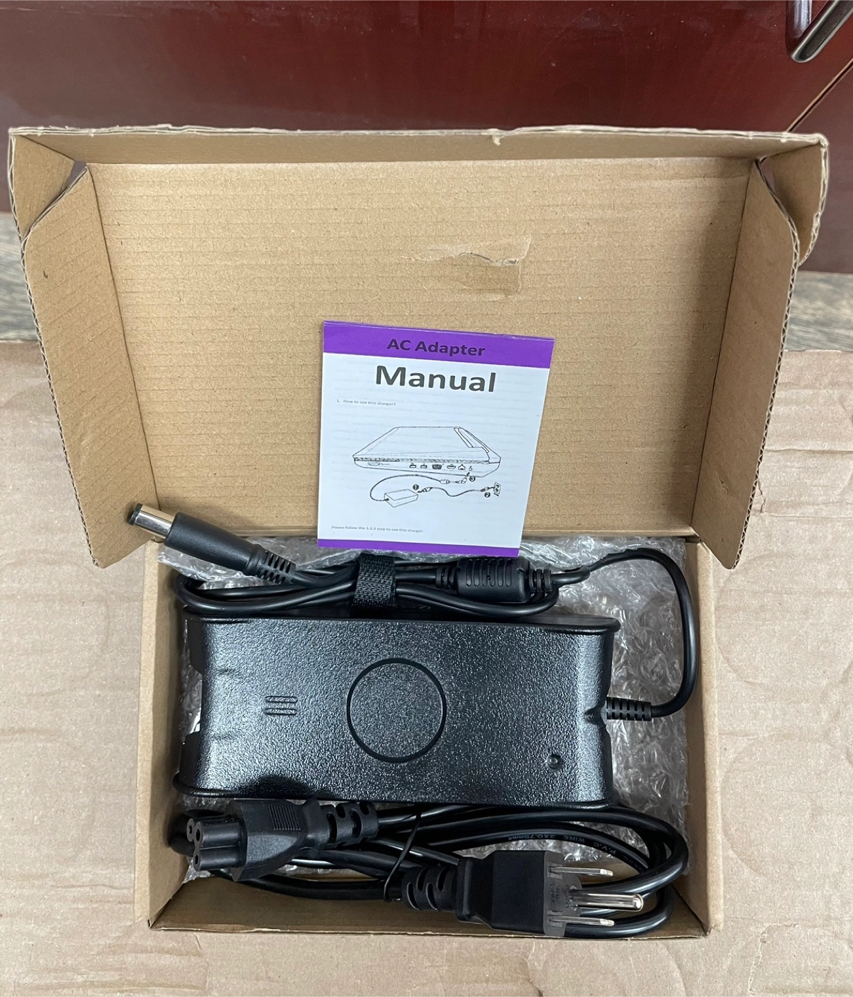 This is a 90W AC adapter. It has an output of 19.5V 4.6A. Includes the manual.
