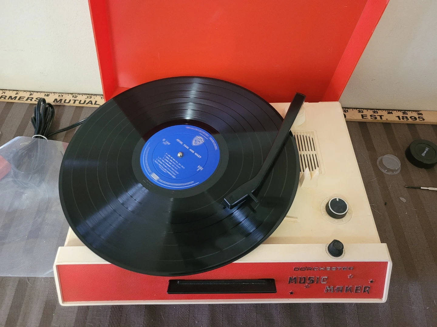 For sell is this Vintage Dorchester Music Maker Record Player in good working condition plays 33 long plays and 7 inches 46 records ....the BAD is that the hinges on the back of the cover are broken.(photo) Asking $20 pick up on beaverbrook lane Kanata thank you for