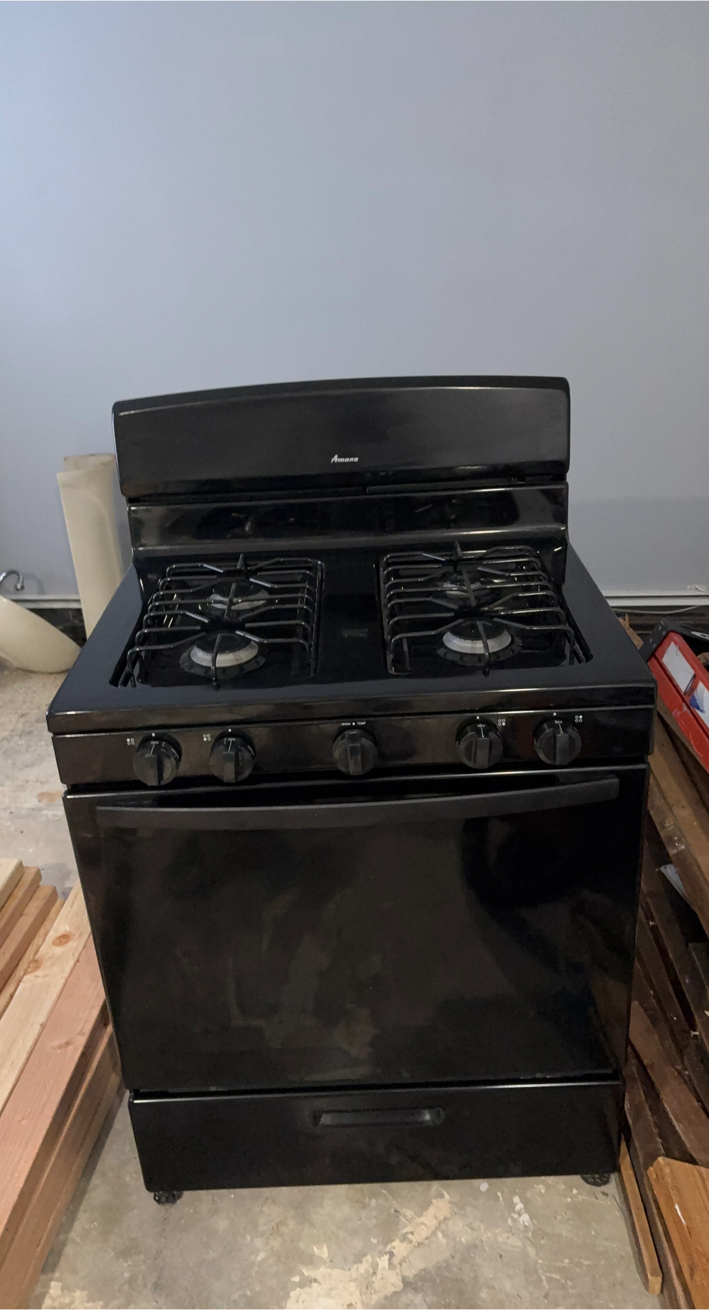 60Selling a black Amana gas range. It's in good condition and ready for a new home!