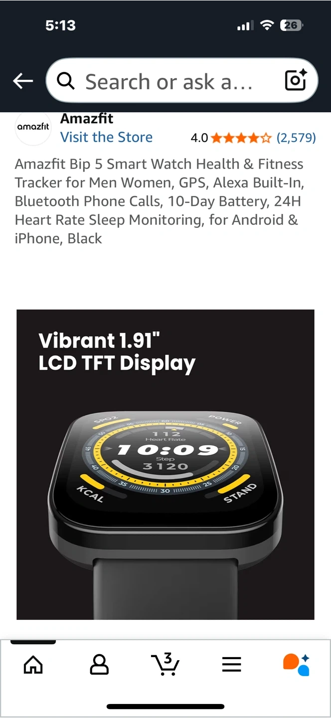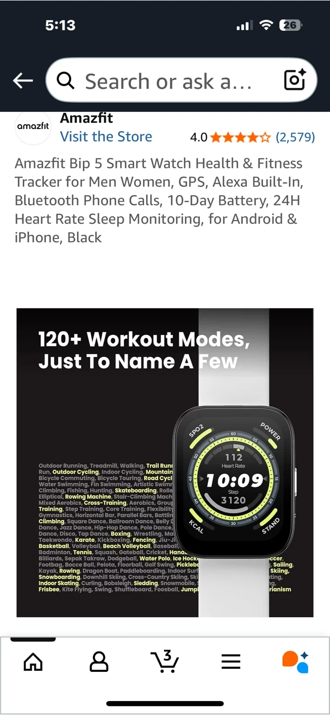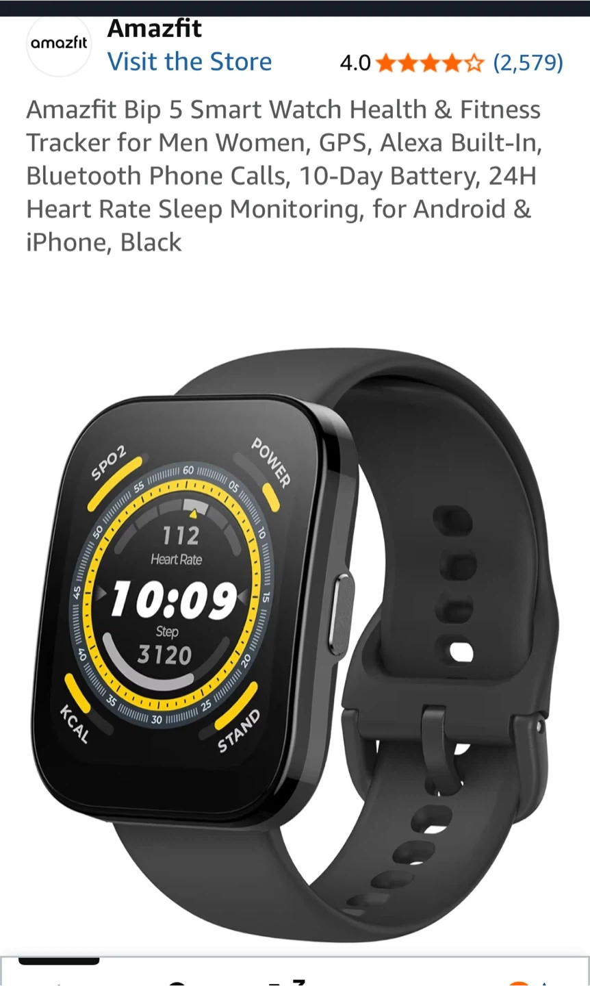 84Selling an Amazfit Bip 5 Smart Watch in Soft Black! It's a great health and fitness tracker with features like GPS, Alexa Built-in, Bluetooth phone calls, and 24H heart rate sleep monitoring. It's designed for both Android and iPhone. The battery lasts for up to 10 days with typical use or up to 5 days with heavy use. It also has precise activity tracking with 120+ sports modes and automatic activity detection New open box