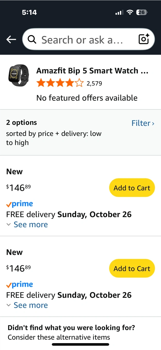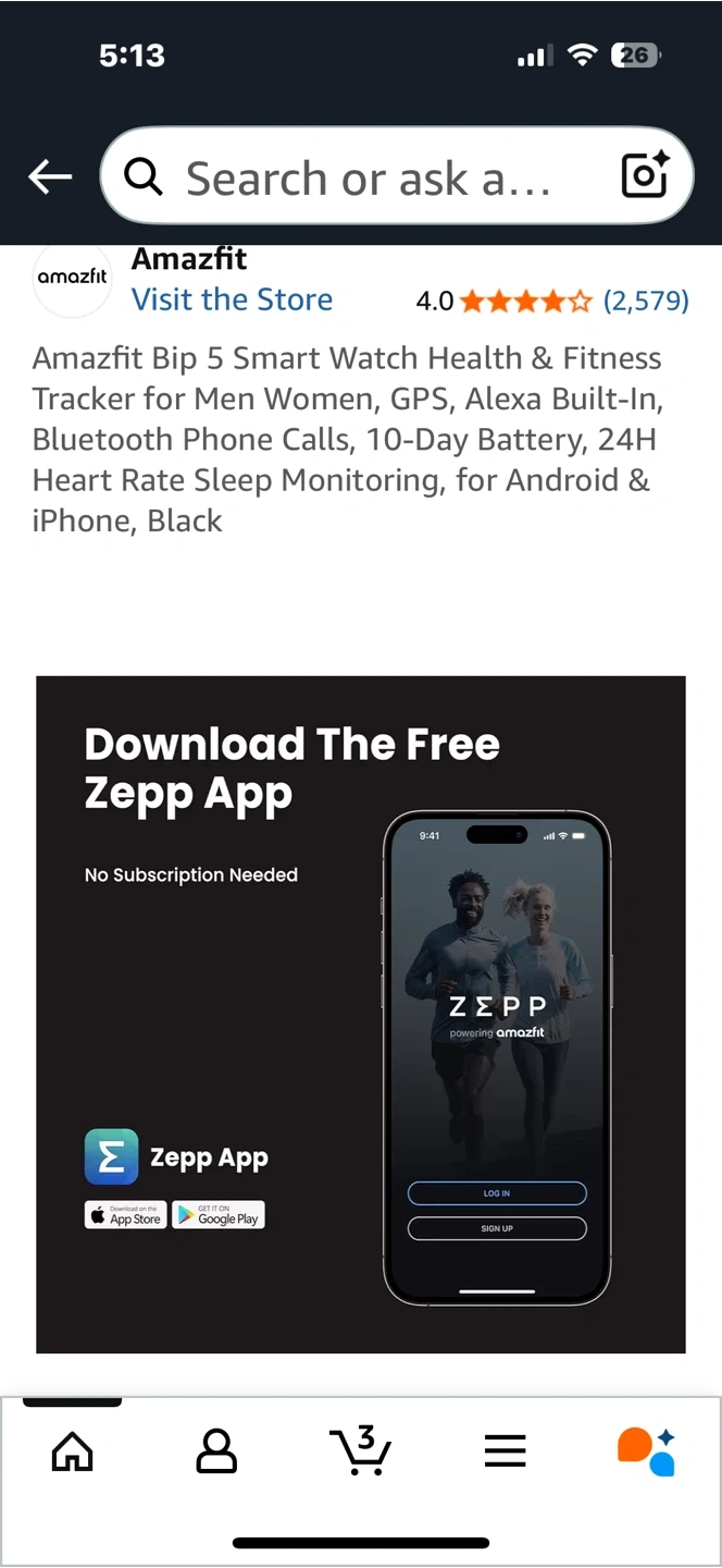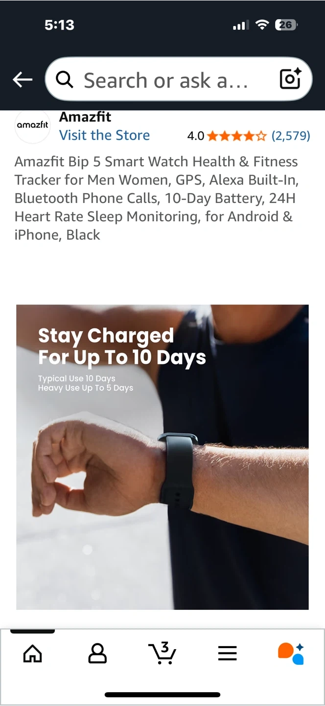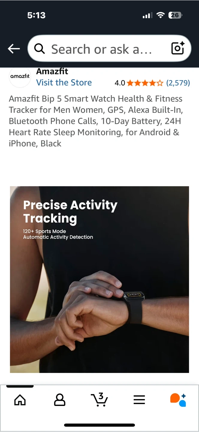 84Selling an Amazfit Bip 5 Smart Watch in Soft Black! It's a great health and fitness tracker with features like GPS, Alexa Built-in, Bluetooth phone calls, and 24H heart rate sleep monitoring. It's designed for both Android and iPhone. The battery lasts for up to 10 days with typical use or up to 5 days with heavy use. It also has precise activity tracking with 120+ sports modes and automatic activity detection New open box