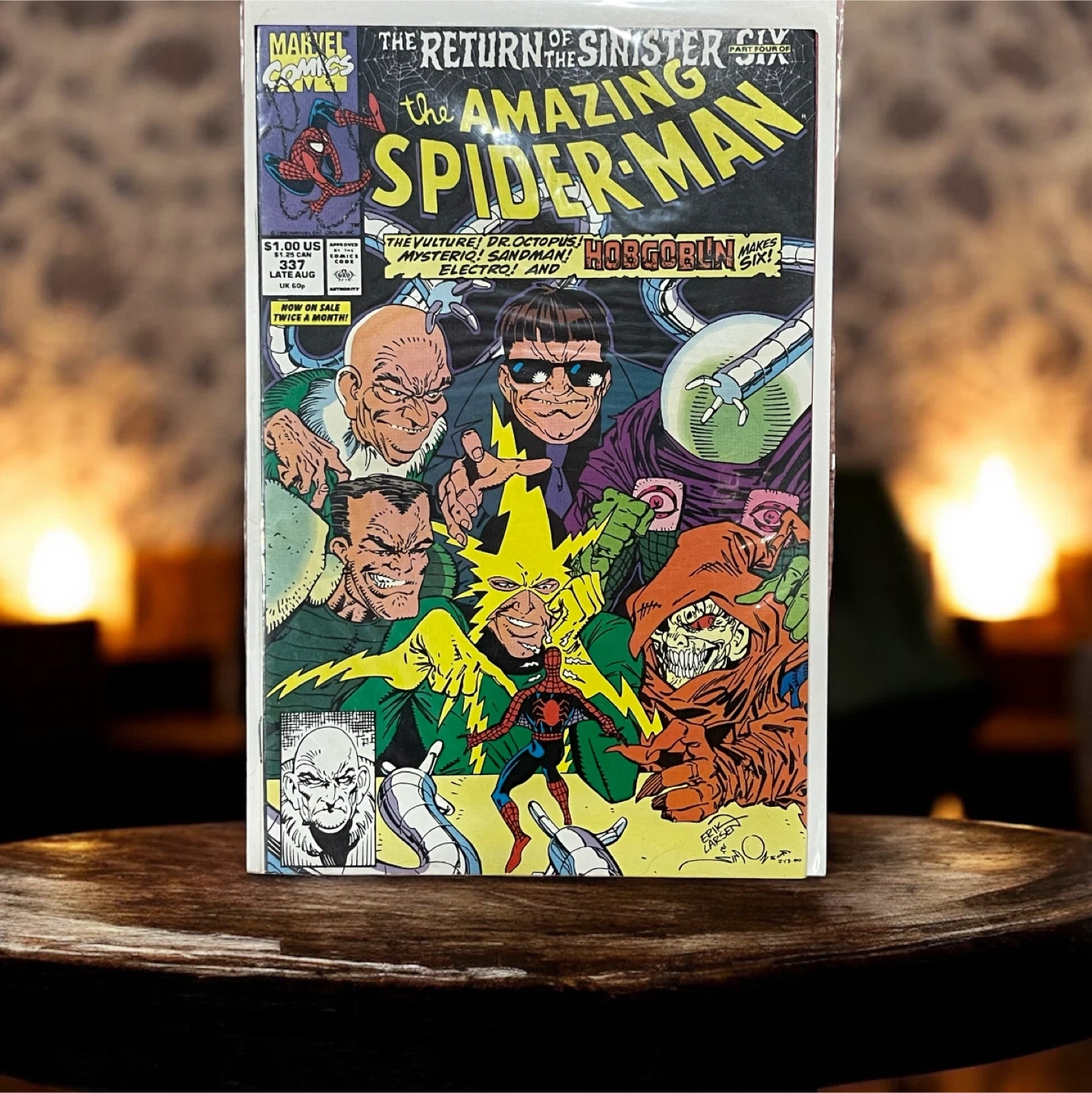 10Selling The Amazing Spider-Man #337 comic book from Marvel Comics. This issue features The Return of the Sinister Six, with villains like The Vulture, Dr. Octopus, Mysterio, Sandman, Electro, and Hobgoblin!