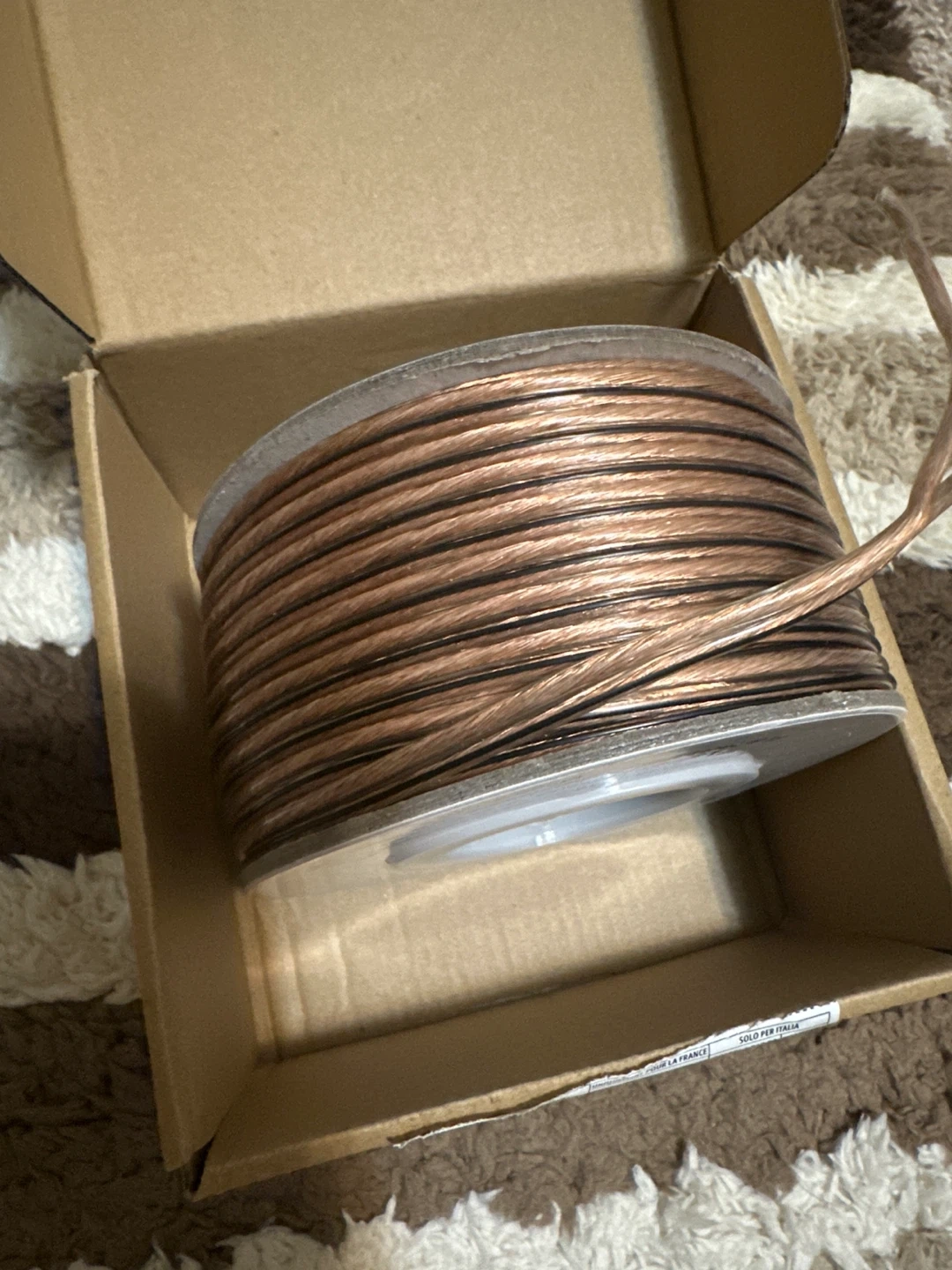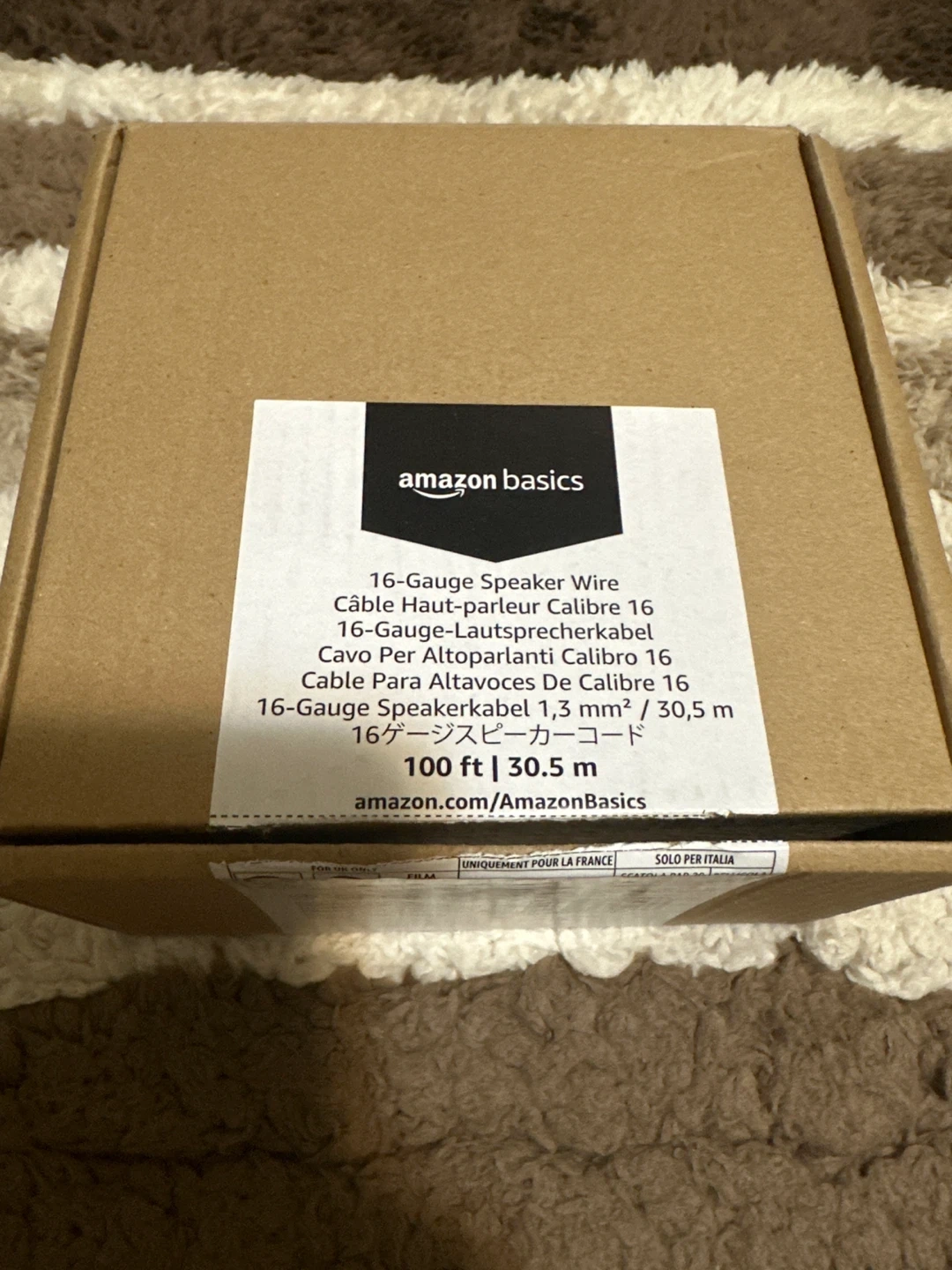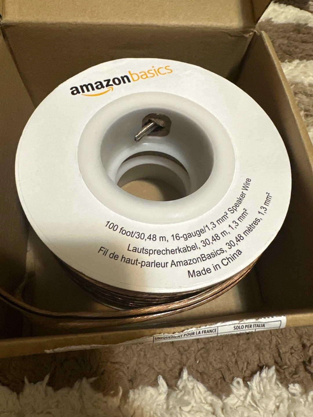18Selling a new roll of Amazon Basics 16-Gauge Speaker Wire. It's 100 feet (30.5 meters) long and comes in the original box. Perfect for setting up your home audio system. My brother bought it but not need anymore. Needs to go asap.