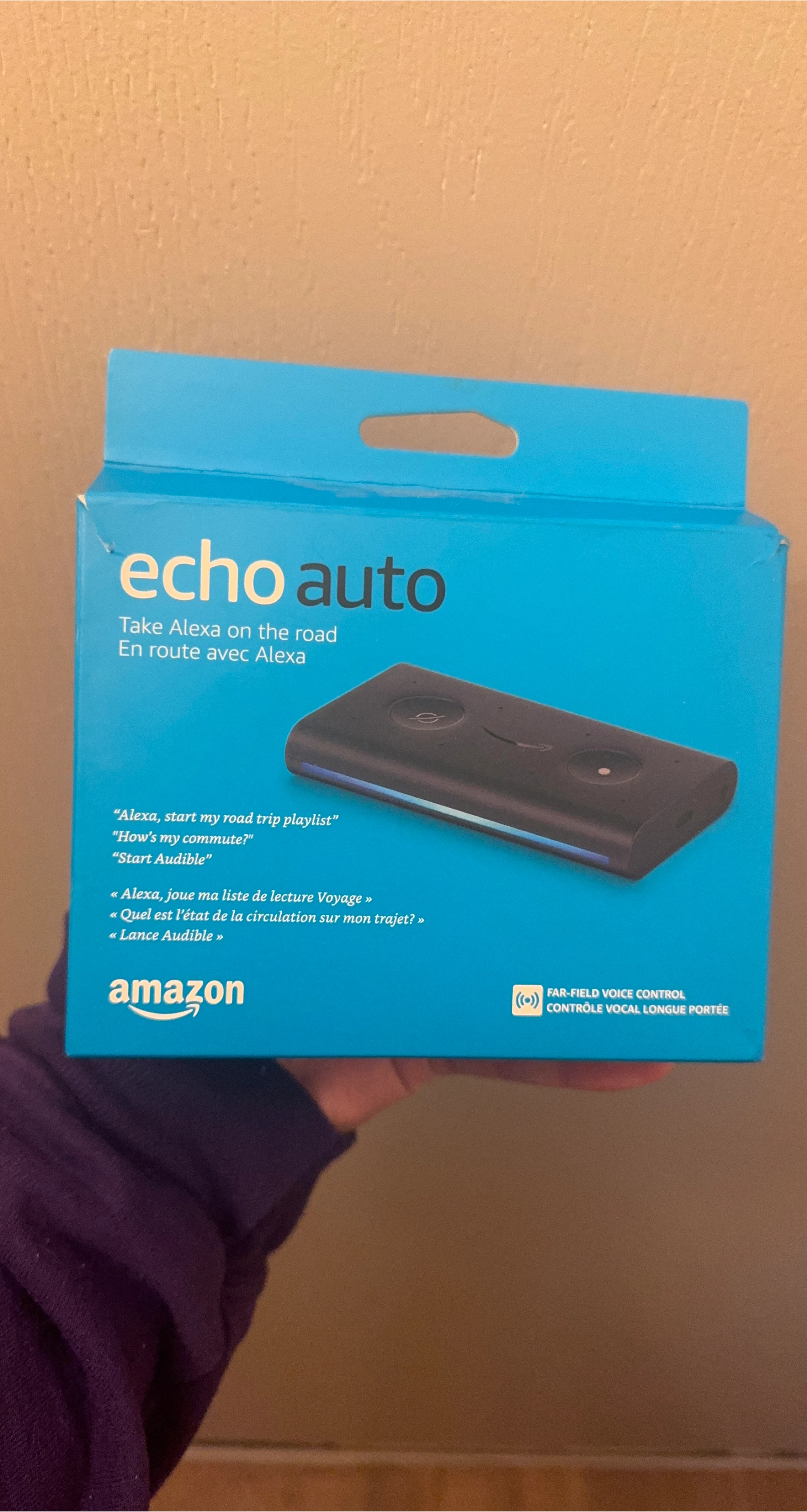108Selling an Amazon Echo Auto in its original box! It's designed to bring Alexa to your car, so you can use voice commands for music, navigation, and more while you're driving. It features far-field voice control, so Alexa can hear you even over road noise. Perfect for road trips or daily commutes! Barely used it. Updated my car don’t need it anymore. Does not come with aux cable. (Dollar store find)