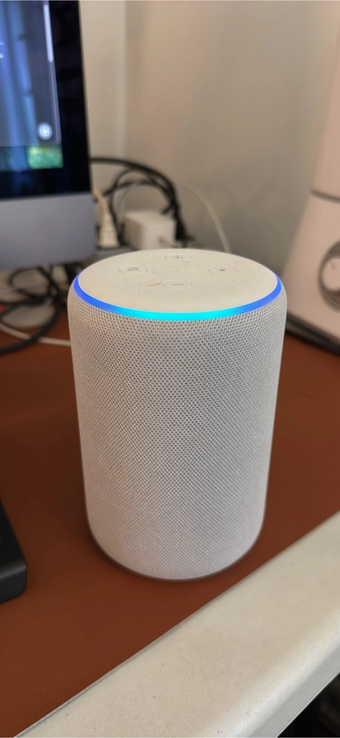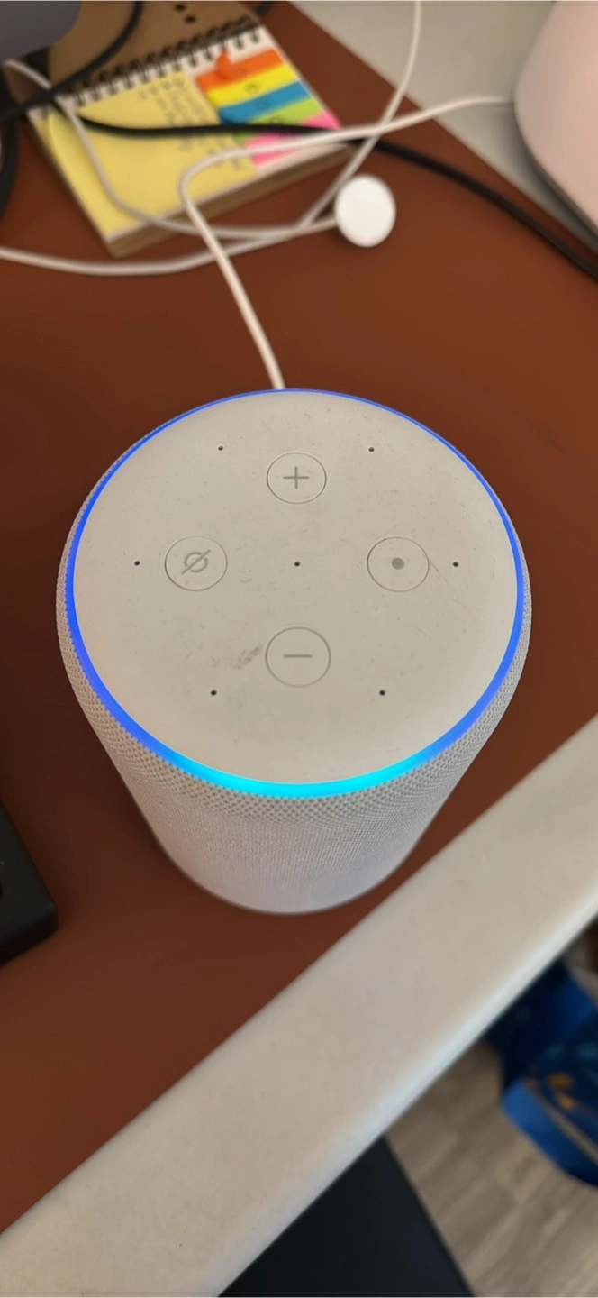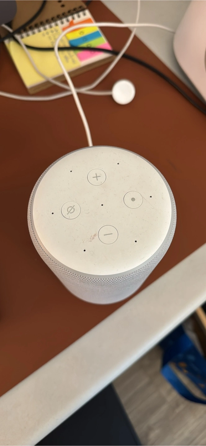 Works really well. Amazing sound quality, fills the entire living room. Also has a temperature sensor. Comes with all the cables and no box. Main and danforth pickup.