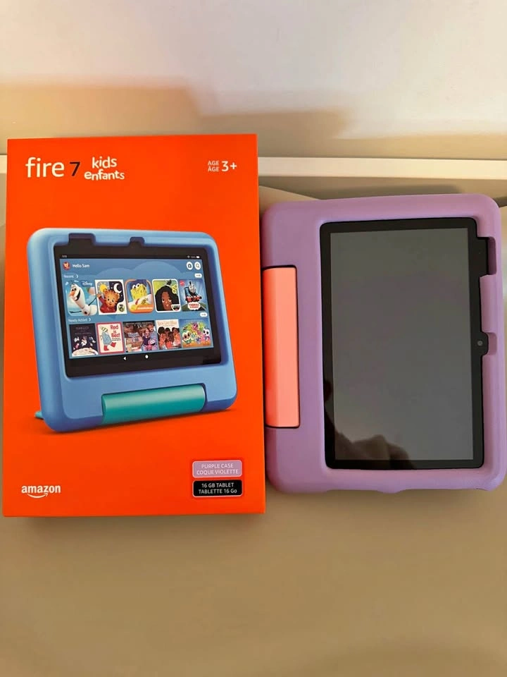 15Perfect tablet for kids aged 3+! Includes durable purple kid-proof case with built-in stand and full access to Amazon Kids+ content (cartoons, games, books, and more). Subscription not included. ✅ Excellent (perfect) condition – barely used ✅ Includes original box ✅ 7” display, 16GB storage ✅ Parental controls for safe screen time