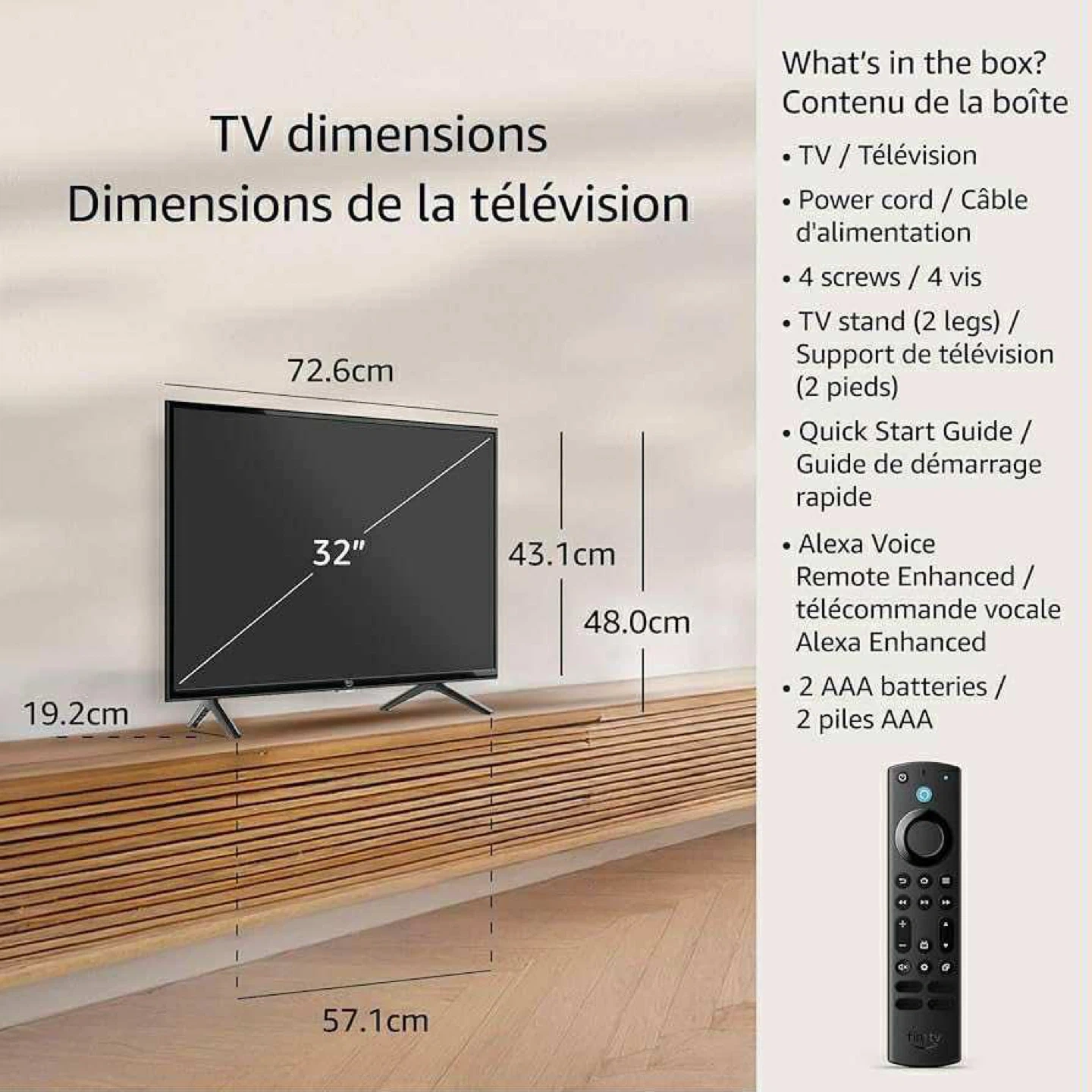 Brand new (open box) Looking to upgrade your entertainment setup? I'm selling an Amazon Fire TV 2-Series Smart TV. It features stunning high definition and comes with Alexa Voice Remote Enhanced. - TV dimensions: 72.6cm x 43.1cm x 19.2cm - Includes power cord, 4 screws, TV stand (2 legs), Quick Start Guide, Alexa Voice Remote Enhanced, and 2 AAA batteries