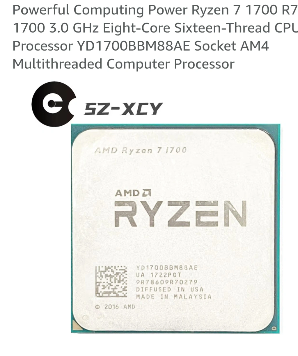 Selling an AMD Ryzen 7 1700 CPU. This is an eight-core, sixteen-thread processor, perfect for a desktop computer build. It's a multithreaded computer processor with socket AM4. perfectly working Price Firm nothing less Pick up only Price Firm