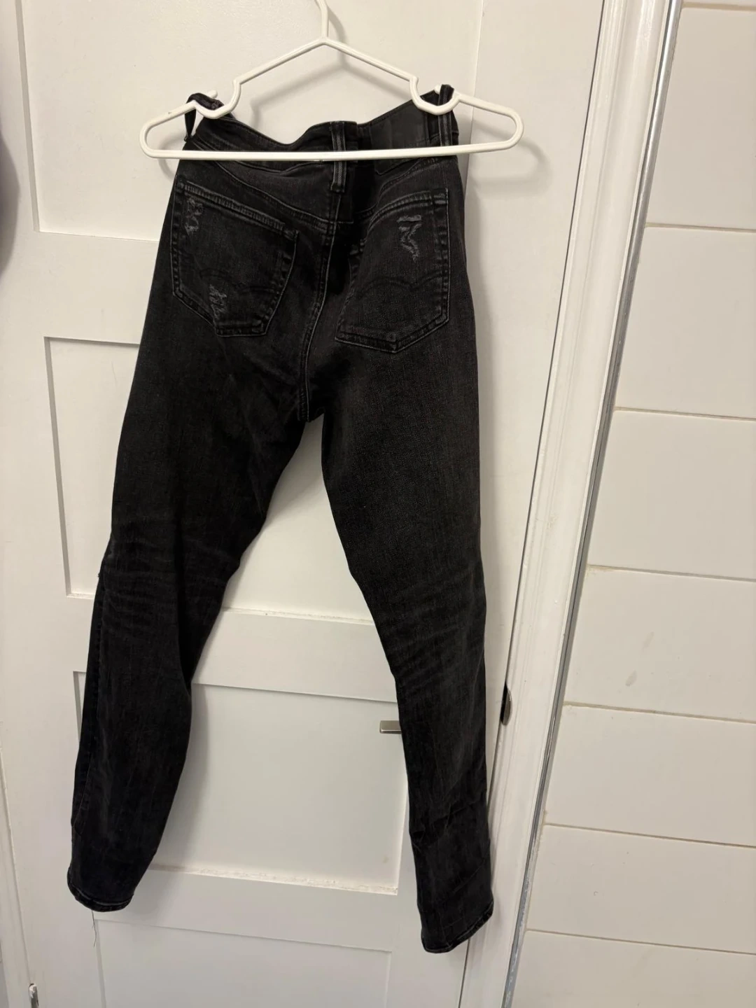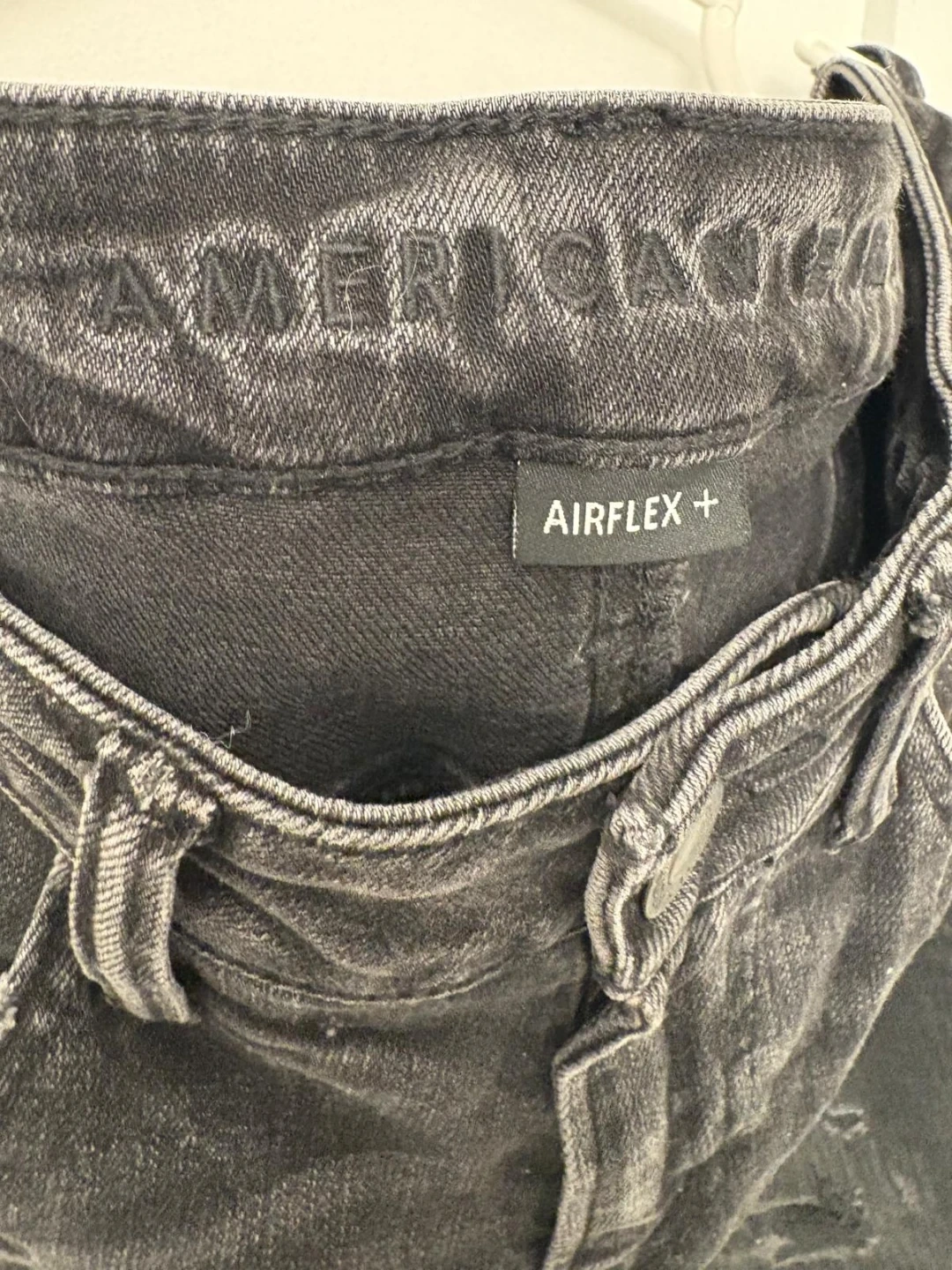 631Selling a pair of American Eagle Airflex+ jeans in size 28x30. They are black and made of 90% cotton, 6% recycled cotton, 3% polyester, and 1% elastane