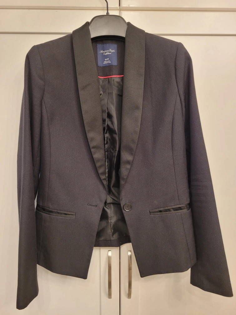 Selling an American Eagle blazer in size XS. It's a stylish piece that would look great for work or going out. The blazer is in great condition and ready for a new home!