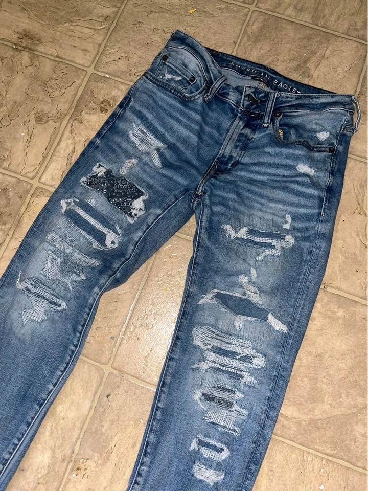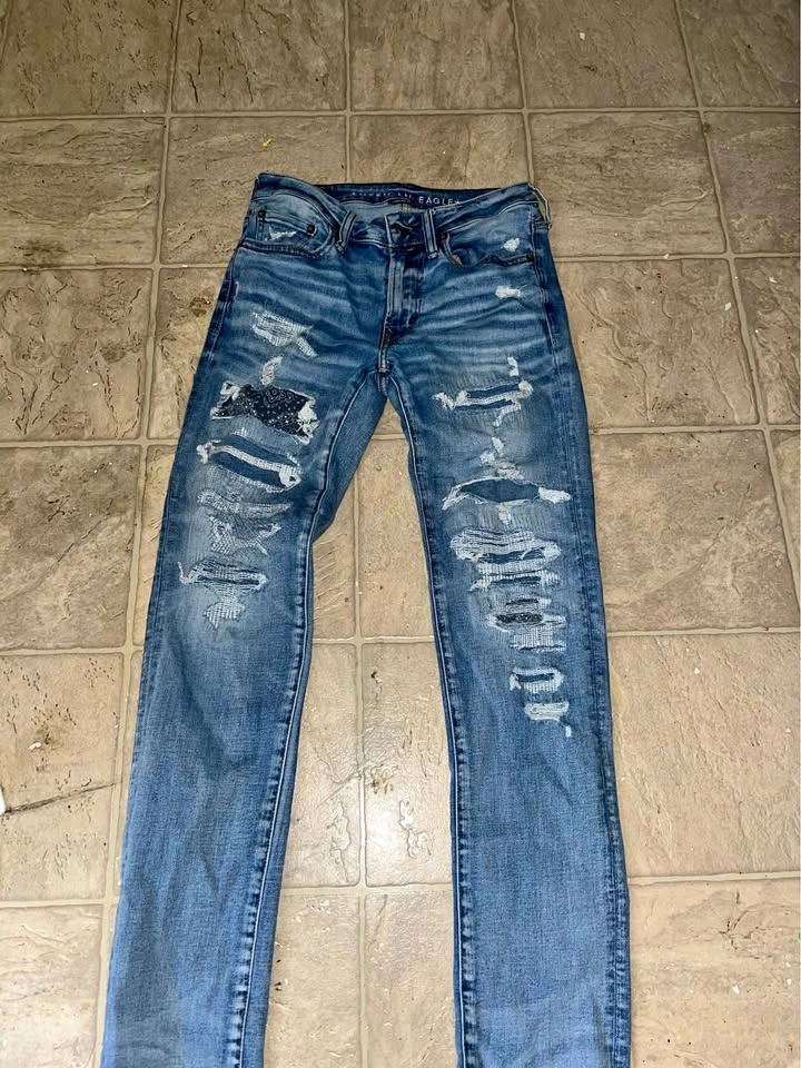 169Size is 28 x32 Blue colour Too small on me so I don’t wear them anymore Trades available or firm on price