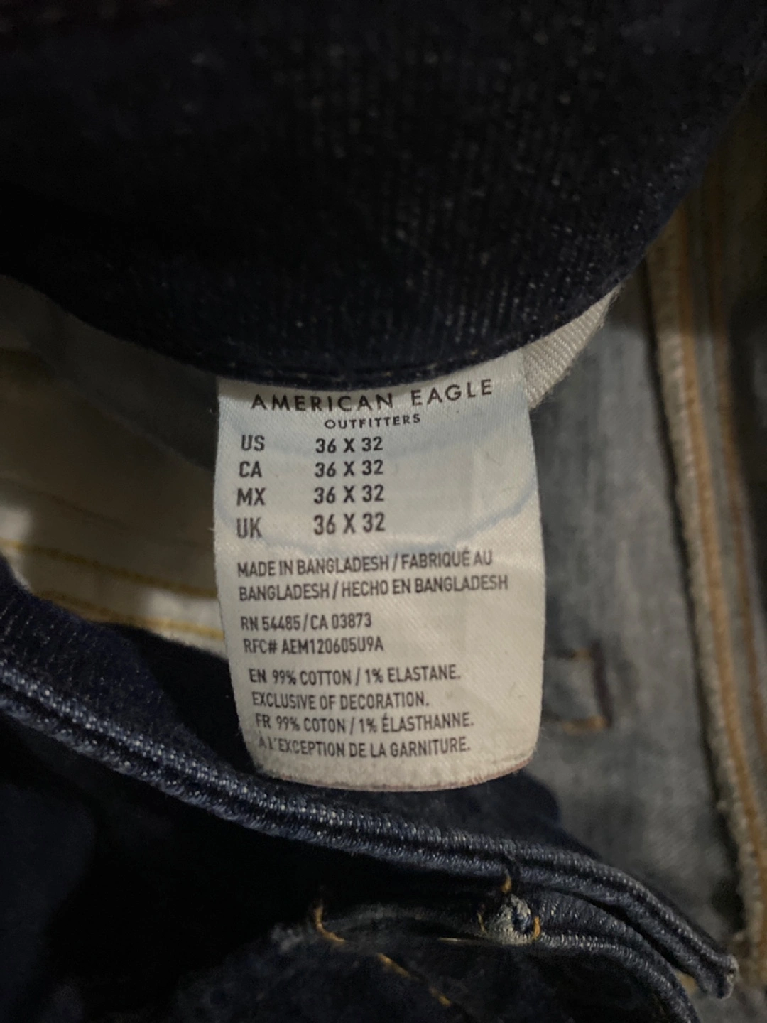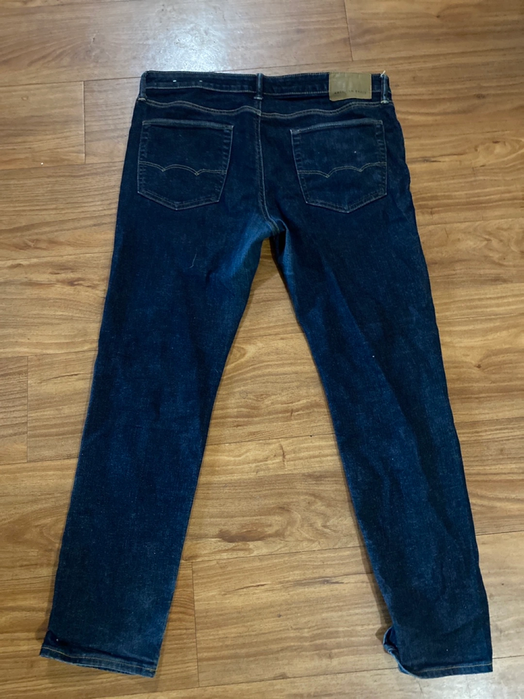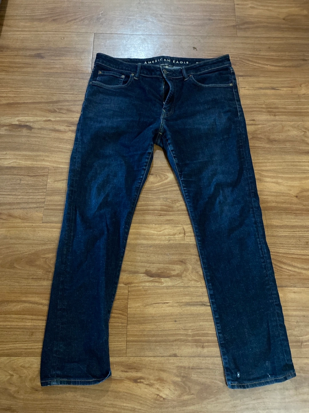 Selling a pair of American Eagle jeans in size 36x32. The material is 99% cotton and 1% elastane. I live near the Brampton Mall, we can set up a time and meet there if you’d like them!