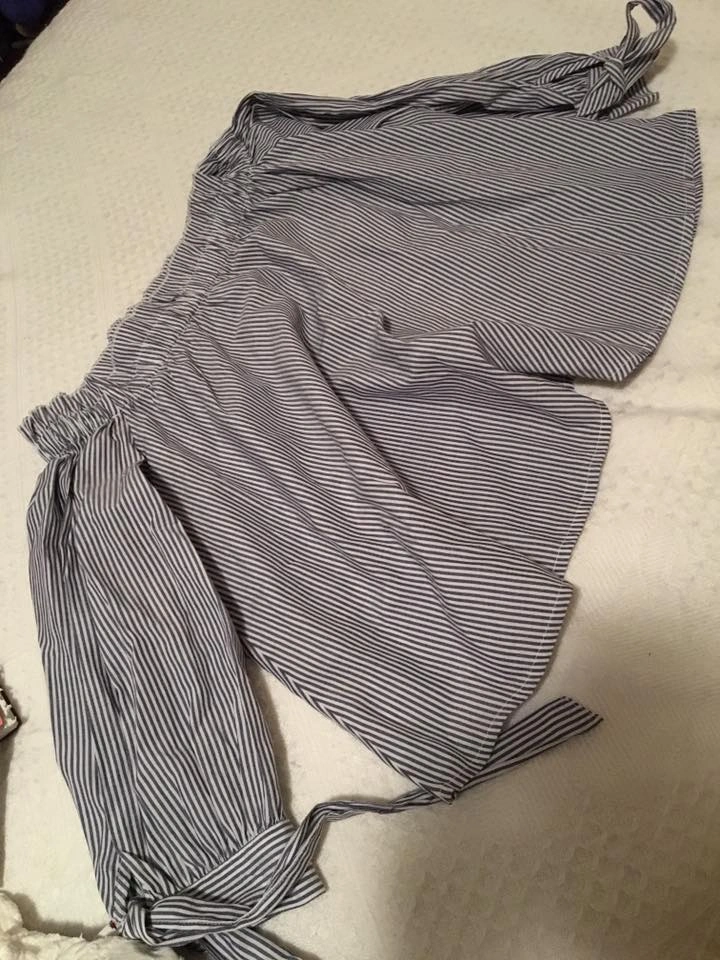 15Beautiful off the shoulder top for the summer. I never wore it since it shows my back. Perfect condition. Size XS