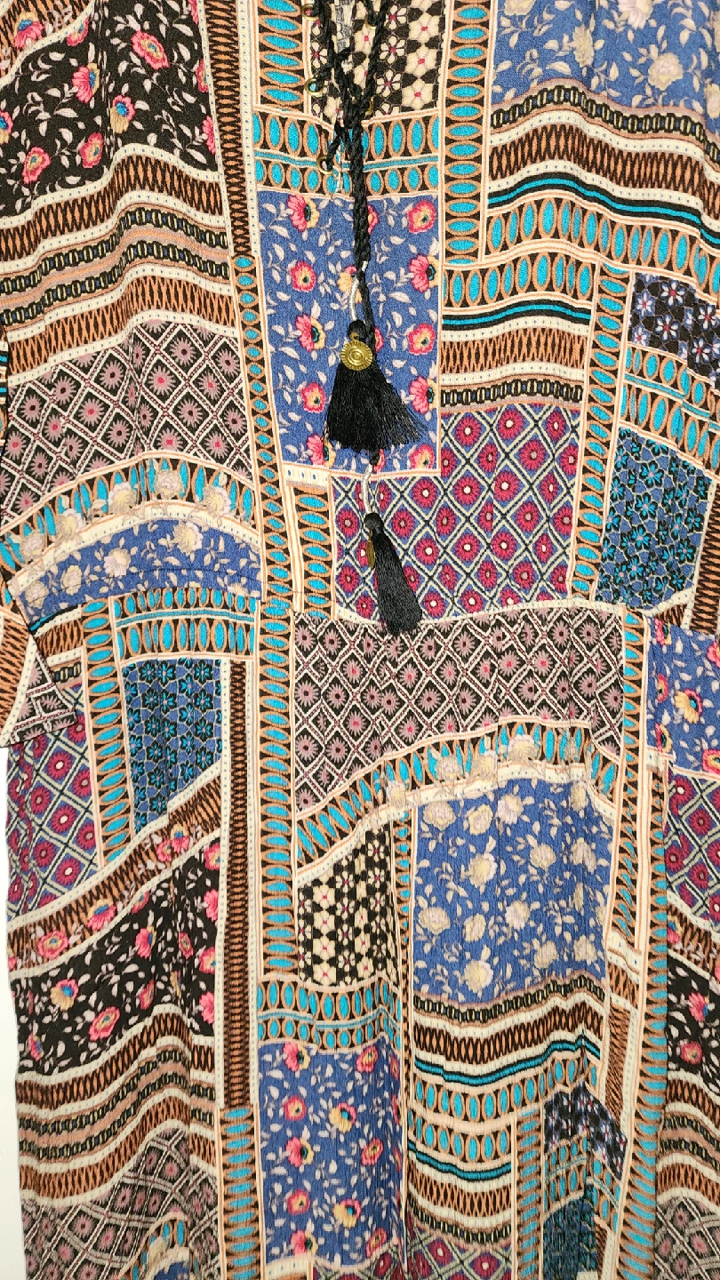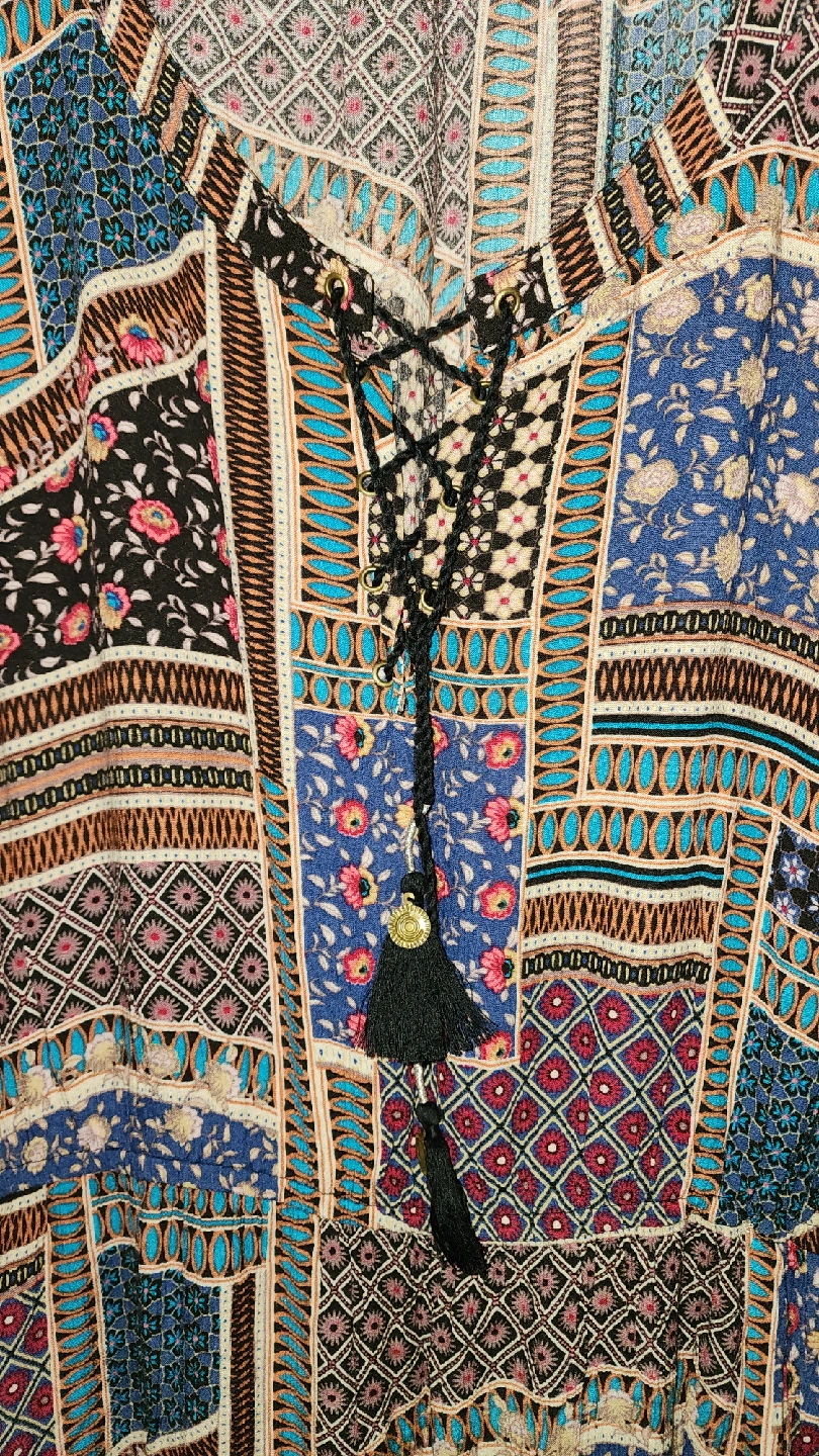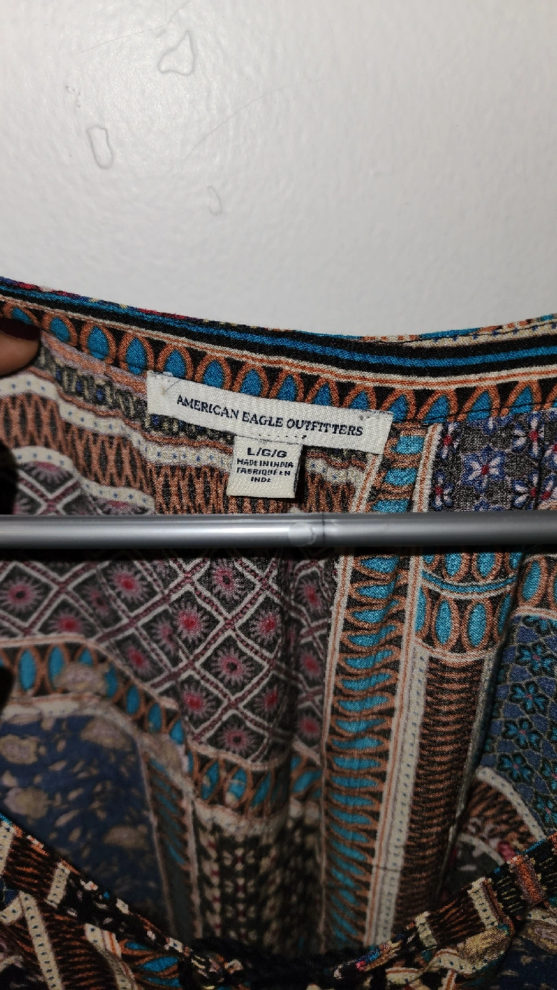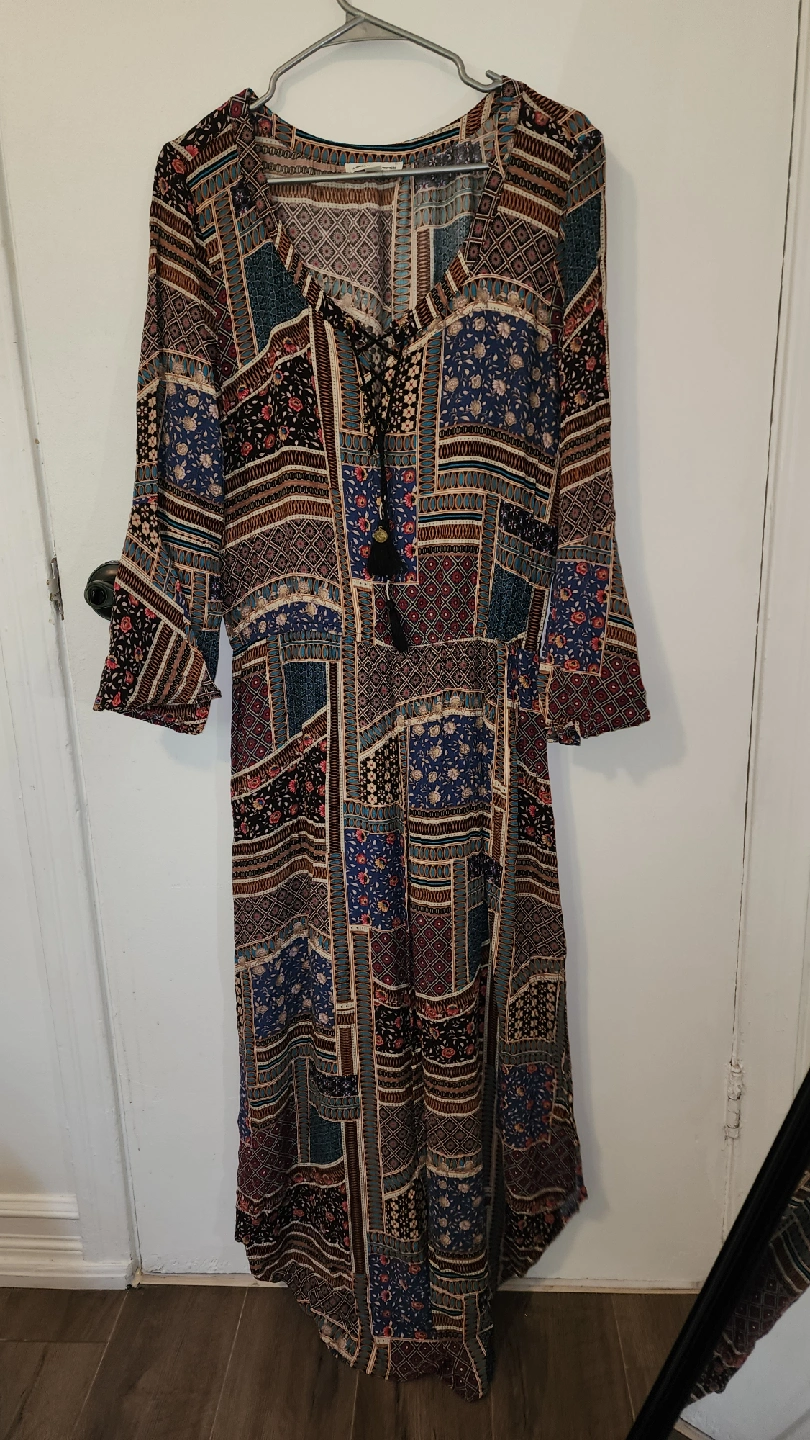 This is a beautiful dress from American Eagle Outfitters in size large. The dress has a unique patchwork pattern with a mix of colours. It's in great condition and ready for a new home!