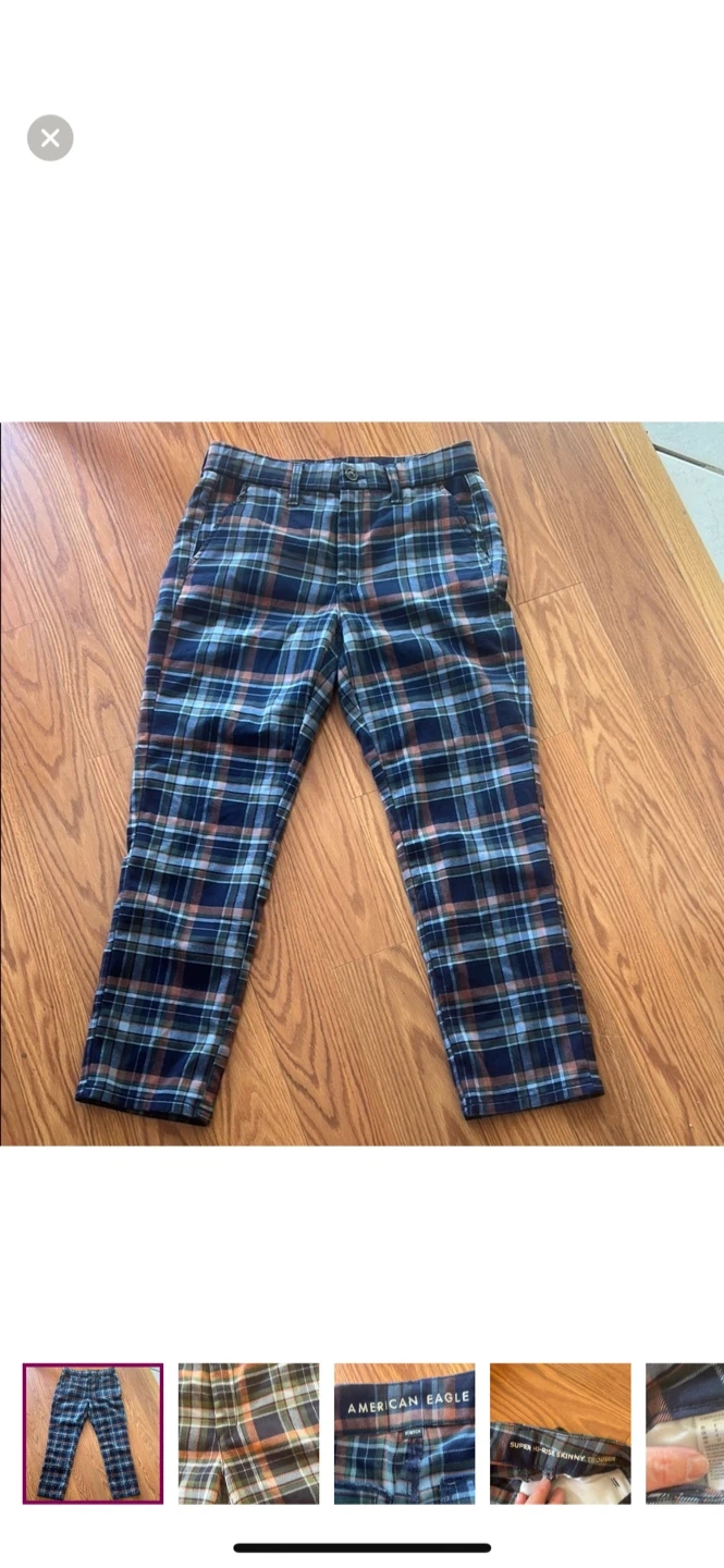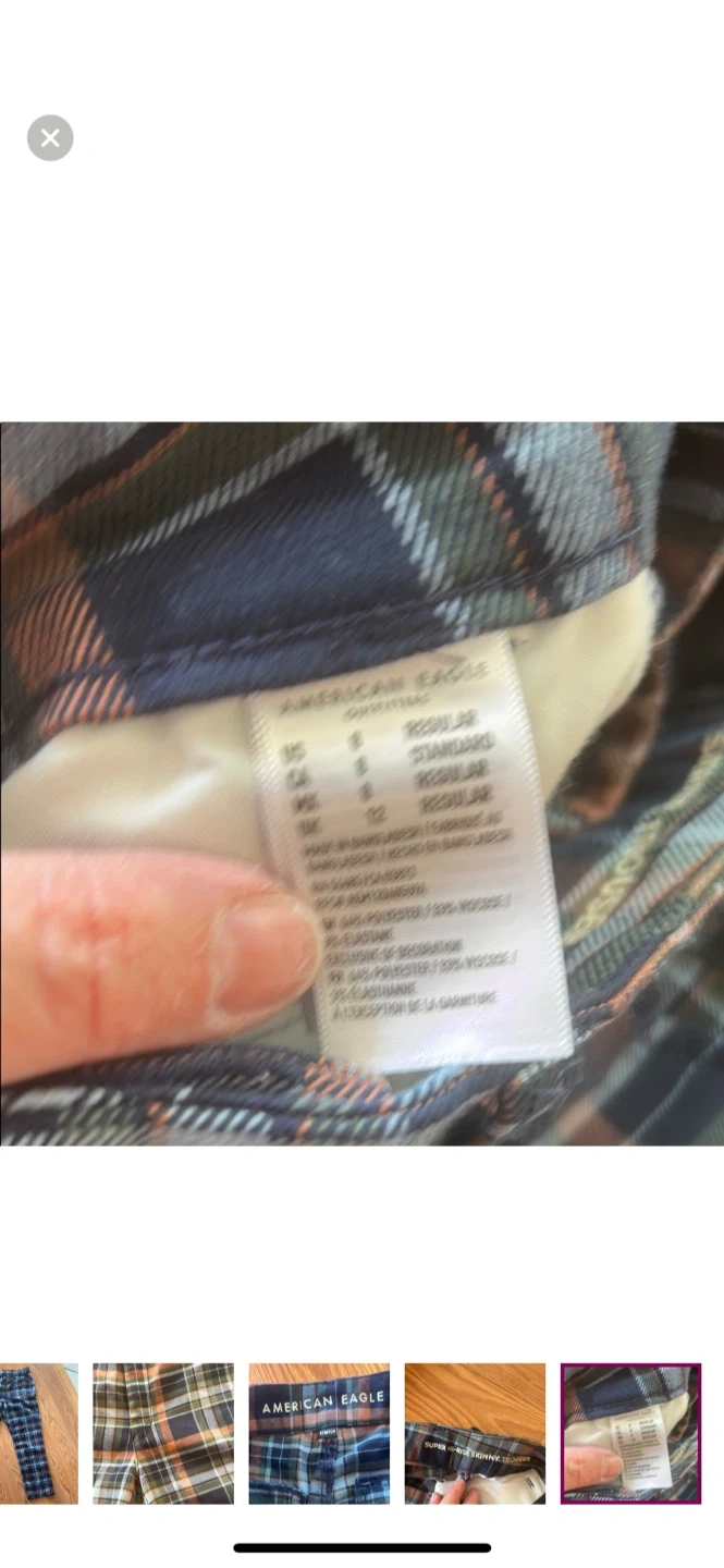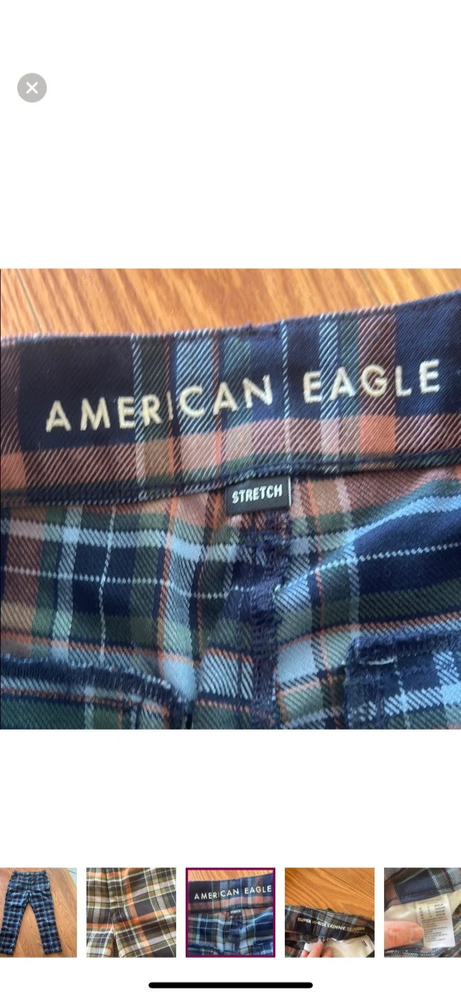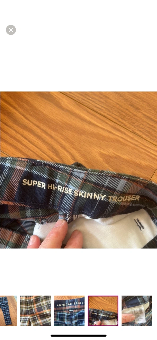 37Cute American Eagle Super Hi-Rise Skinny Trousers in a plaid pattern! They are a size 8 and have a bit of stretch to them. Perfect for a casual or dressed-up look