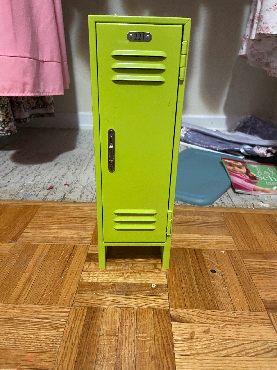Selling a cute American Girl doll locker in a vibrant green colour! It's in great shape and perfect for storing your doll's accessories and clothes. It adds a fun touch to any doll collection or playroom