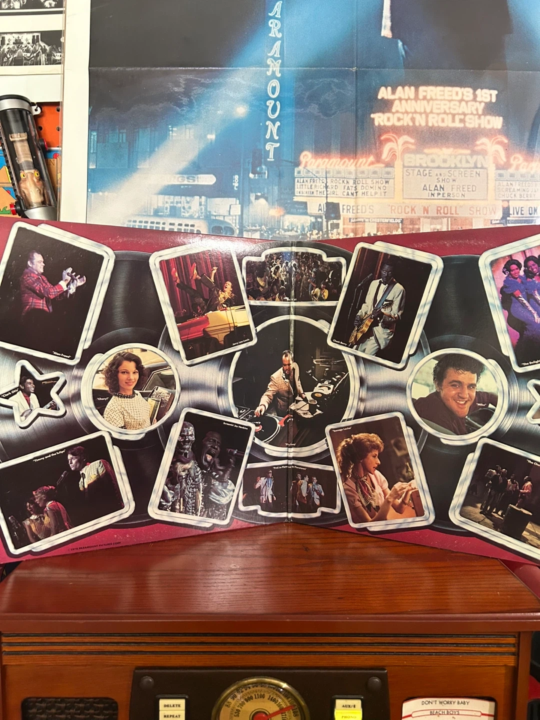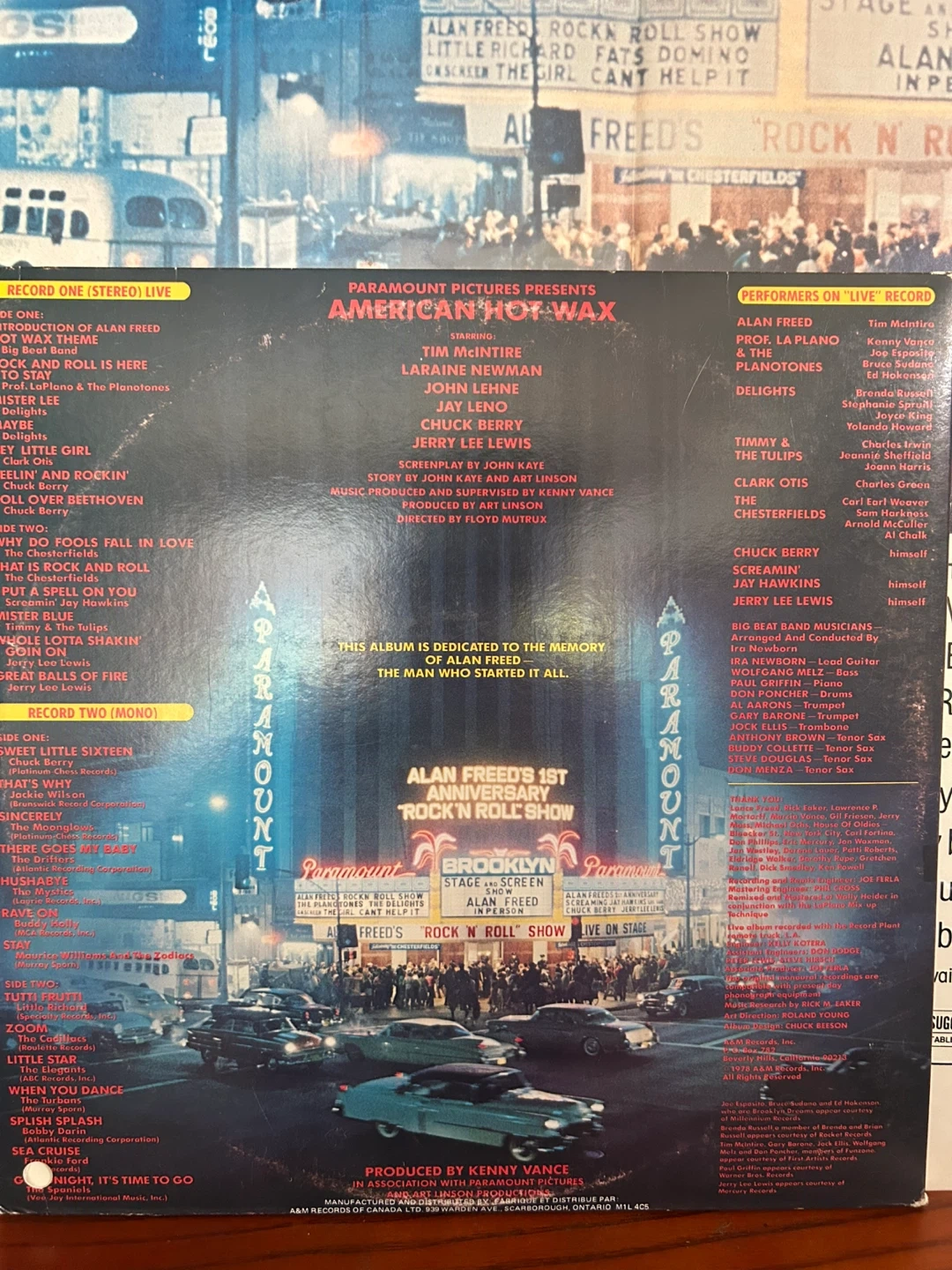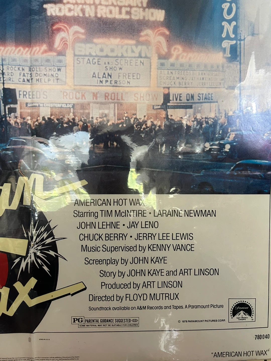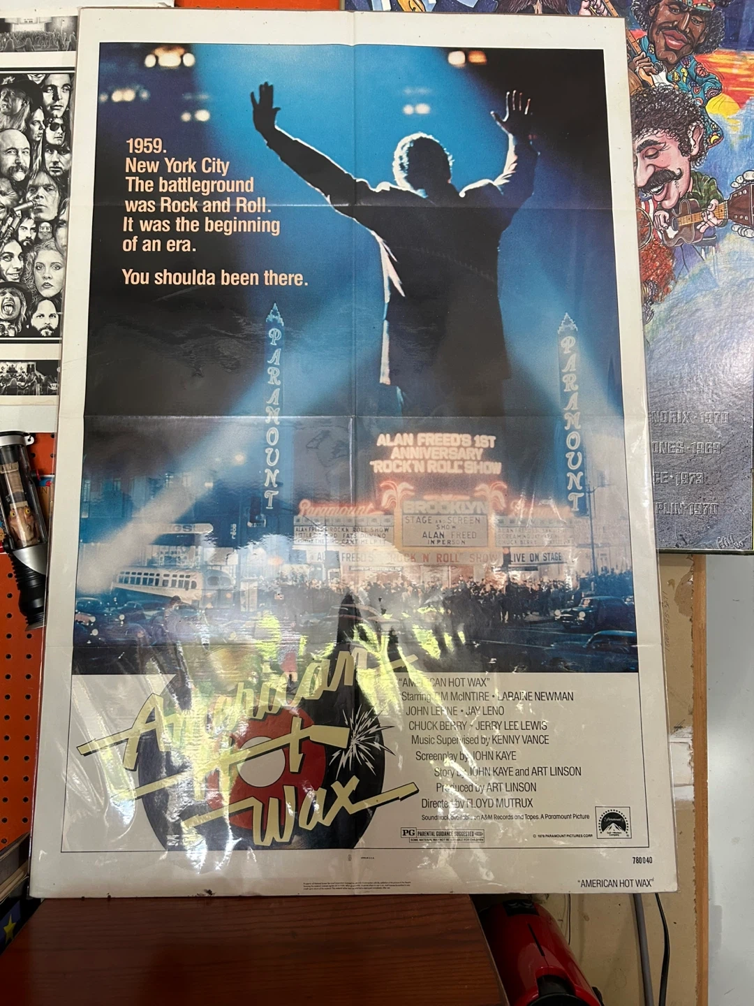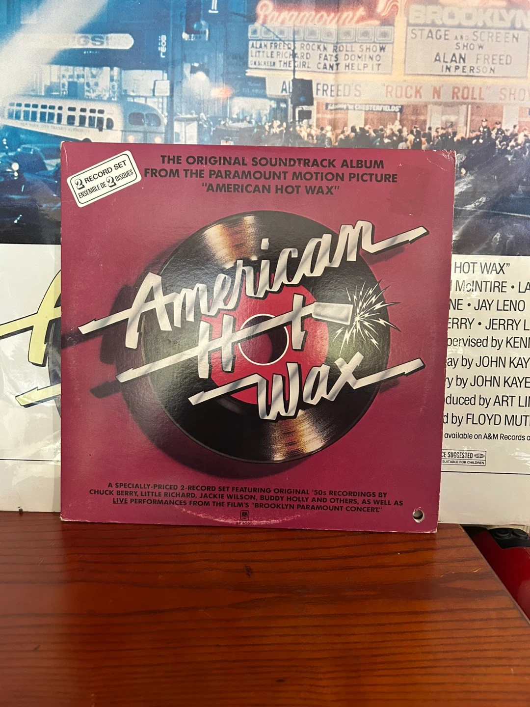 Selling the original soundtrack album from the Paramount motion picture "American Hot Wax"! This is a specially priced 2-record set featuring original '50s recordings by Chuck Berry, Little Richard, Jackie Wilson, and more, as well as live performances from the film's "Brooklyn Paramount Concerts" plus original Poster for American Hot Wax, it is in excellent to near mint, never rolled, vinyls are in excellent condition