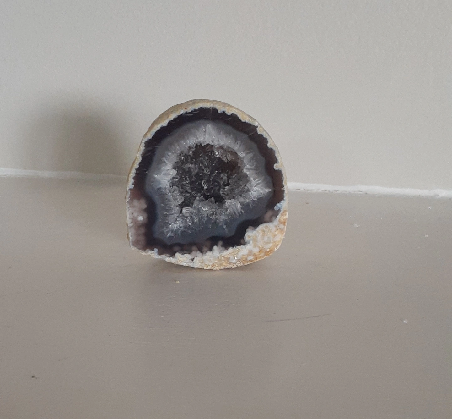 Selling this beautiful amethyst geode! It has a hollow cavity filled with amethyst crystals inside. Great for home decor or as a unique gift.