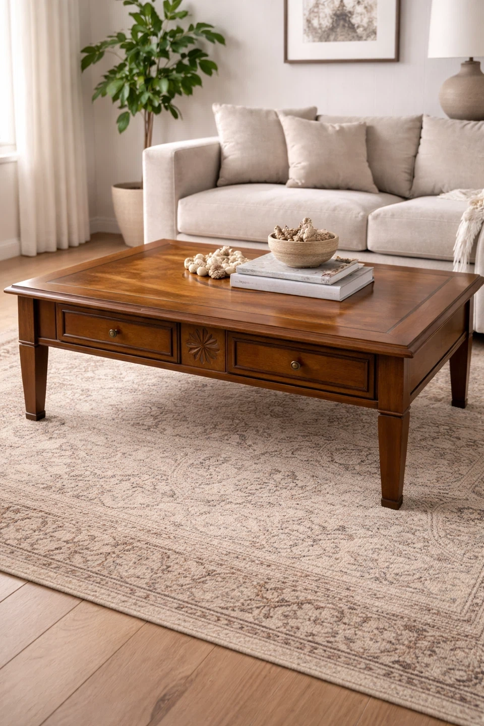 Vintage Coffee Table • Wood Coffee Table • Inlaid Wood Table • Traditional Coffee Table • Decorative Veneer Table • Living Room Table