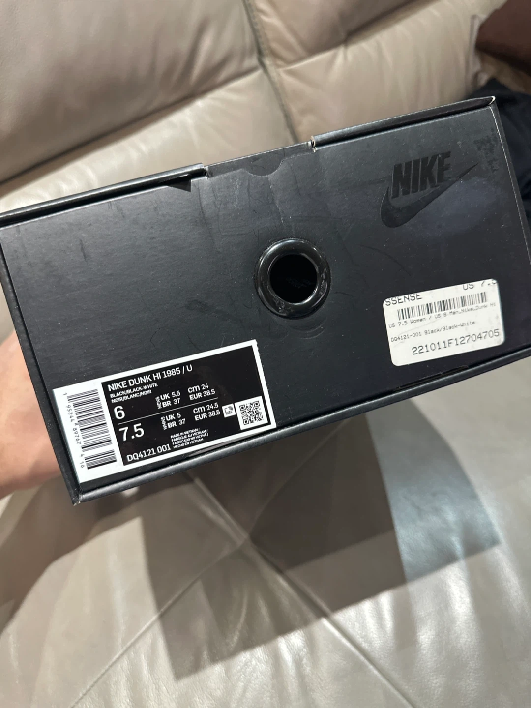 Black Nike Dunk High 1985 edition sneakers . Includes original Undercover "Chaos" box. Men's sizes 6 / womans 7.5