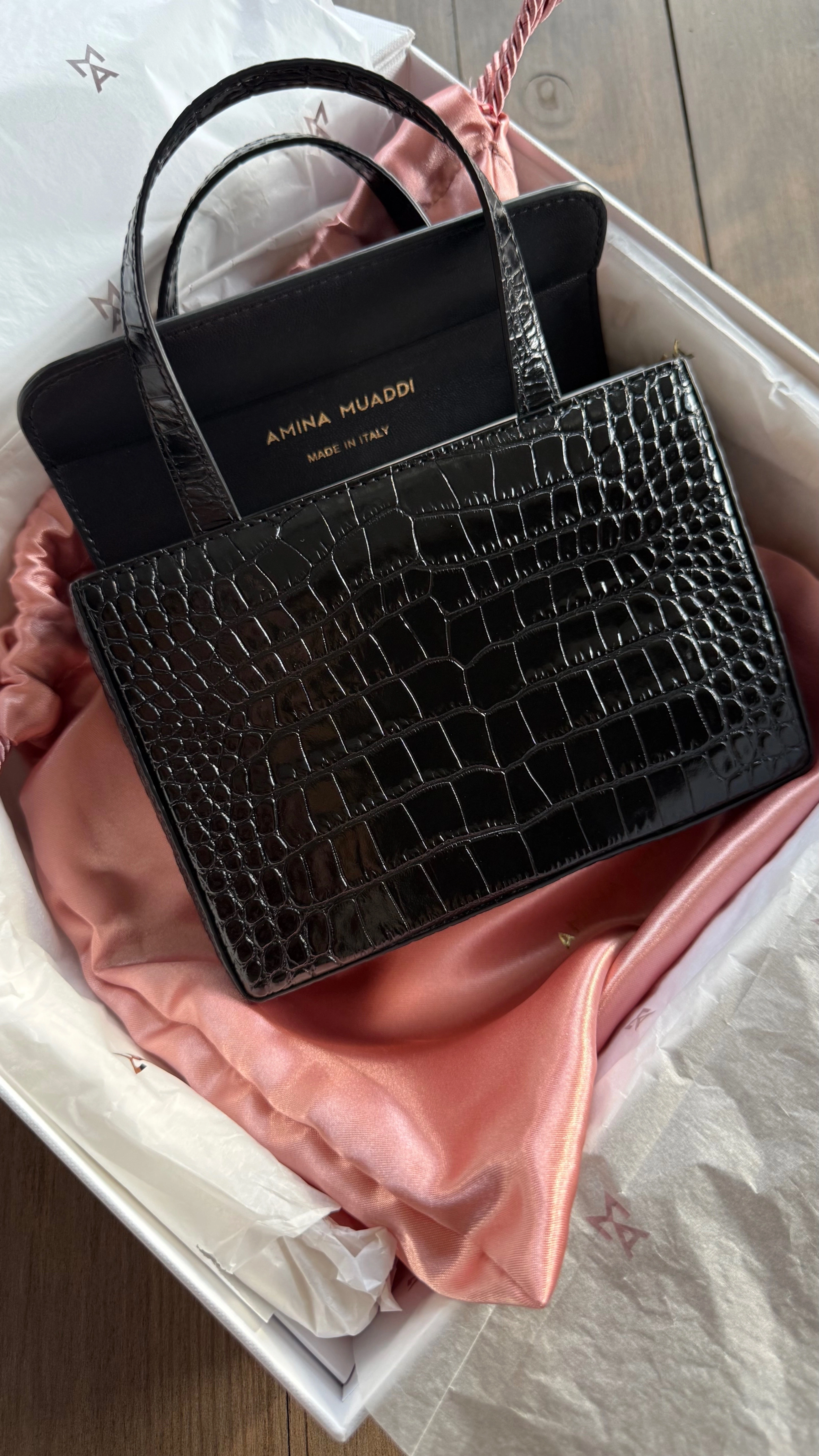 Serious inquiries only. Amina Muaddi “Amini Giorgia Bag” in Black Croc. Made in Italy. Purchased on SSENSE for $1030 before tax in 2021. Pickup in St. Albert (North).