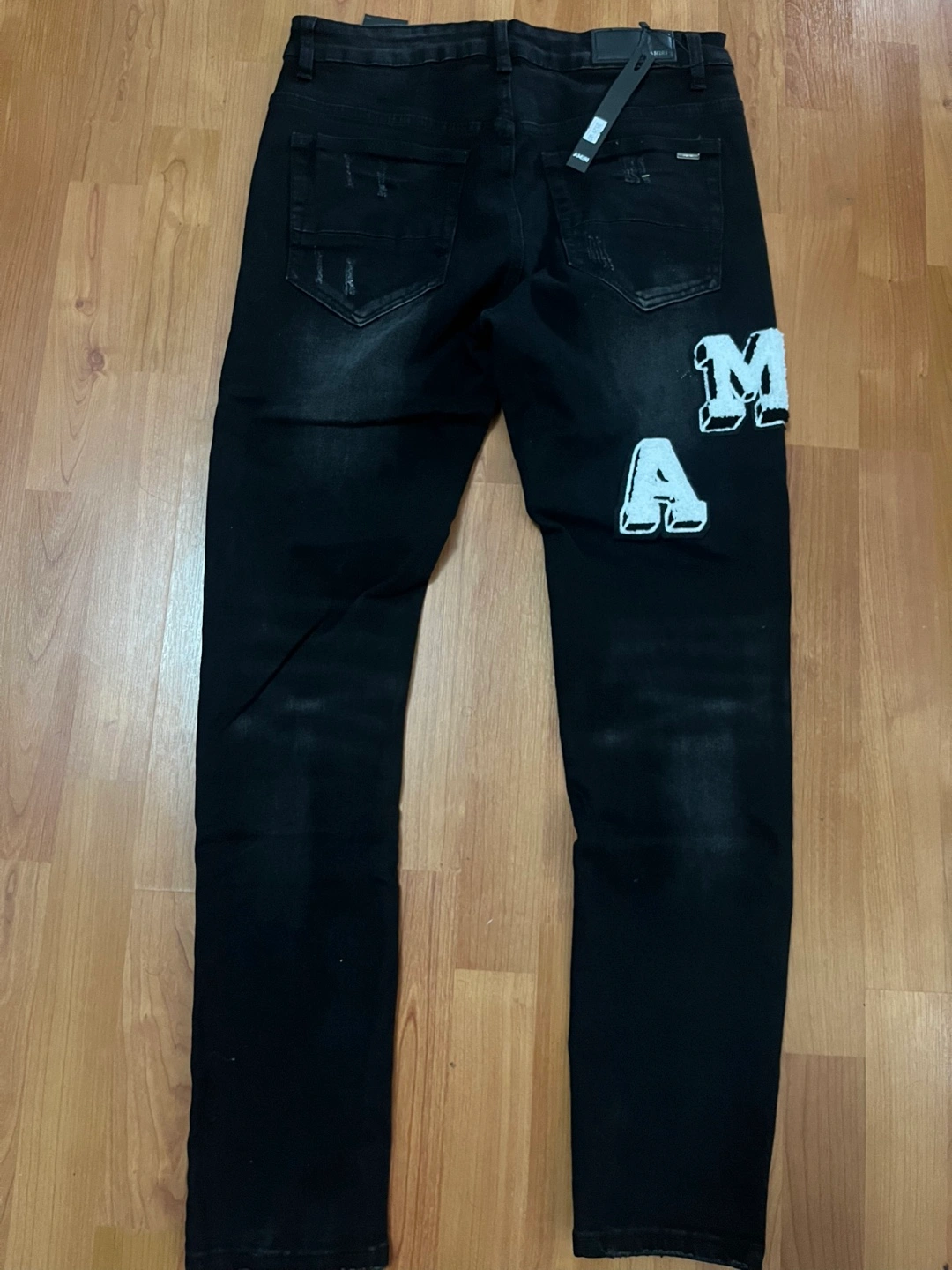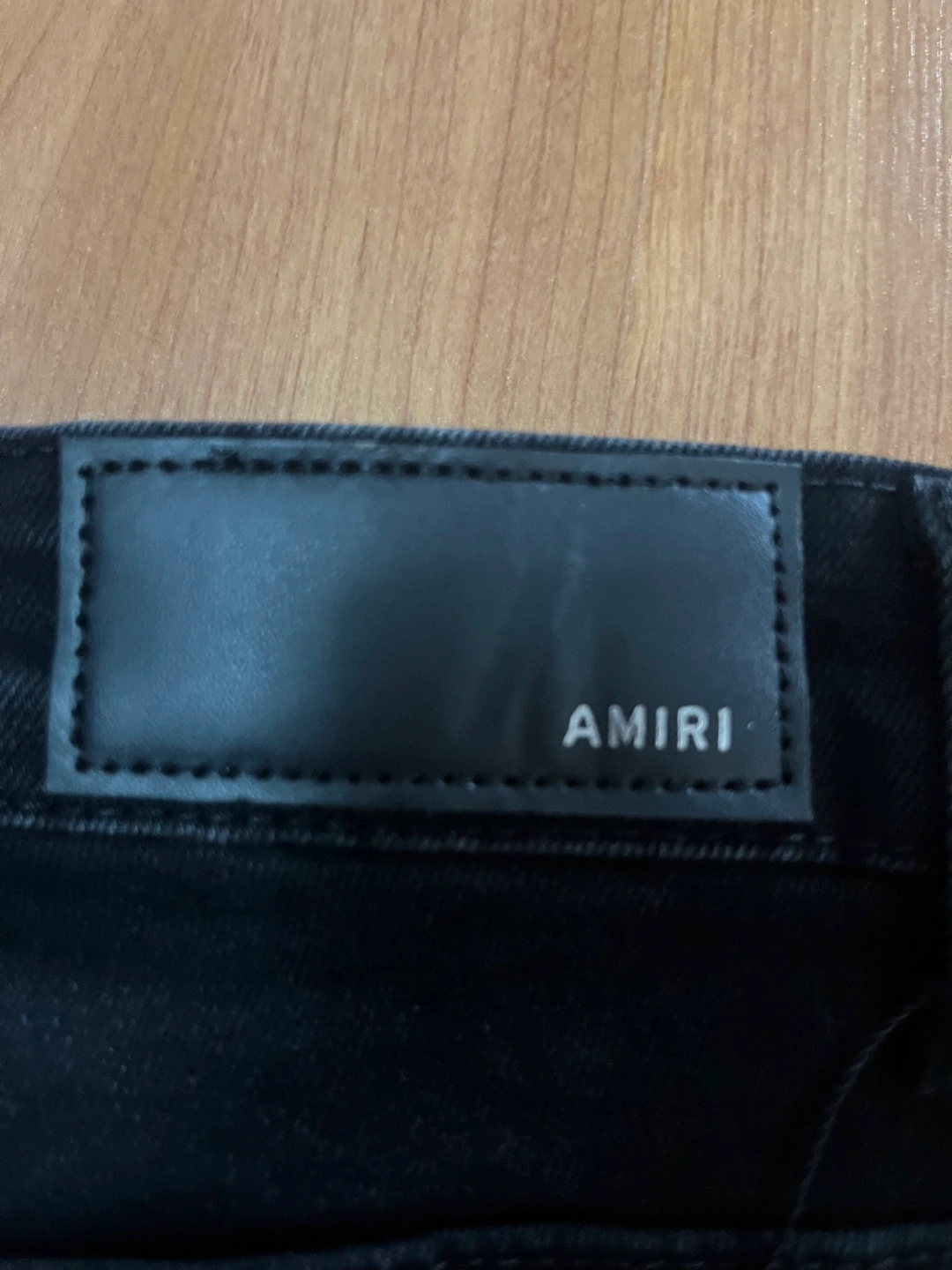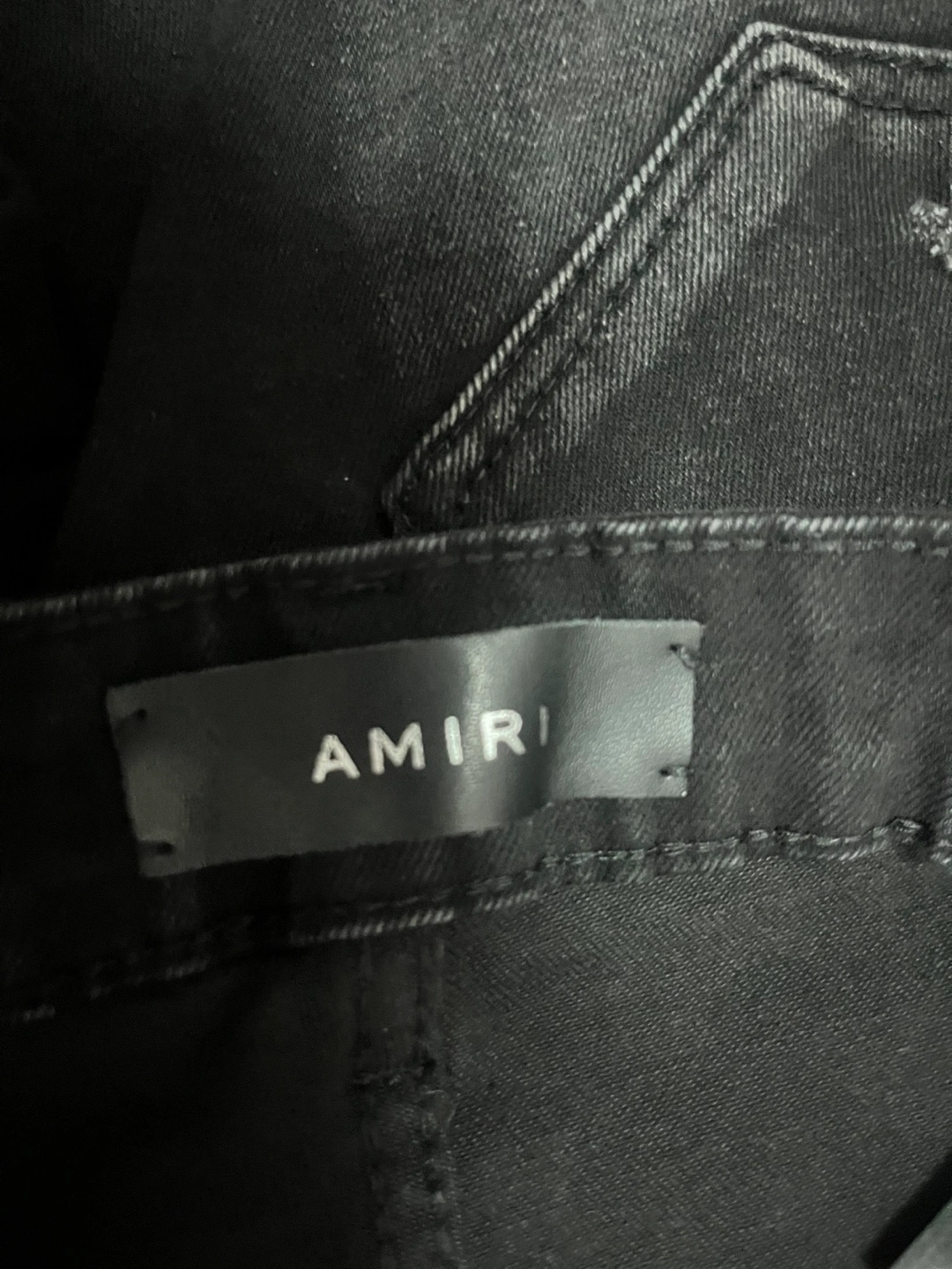 Selling a pair of Amiri black distressed jeans. They have some cool detailing and would look great in your wardrobe!