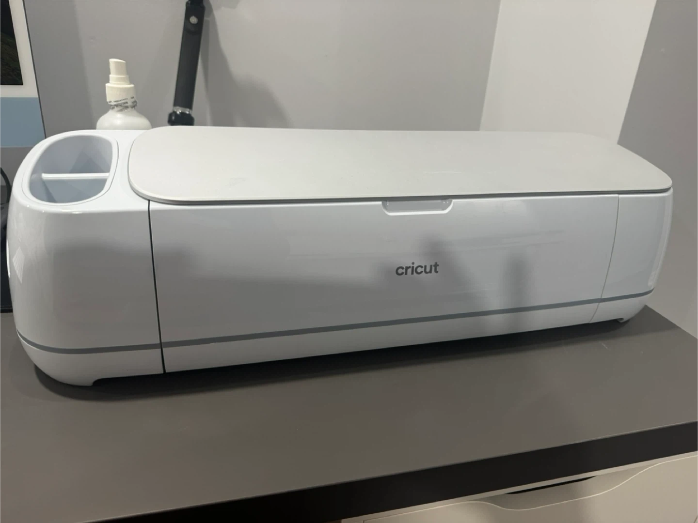 This is a white Cricut Maker 3 cutting machine. It's designed for various crafting projects. This machine can cut a wide range of materials.